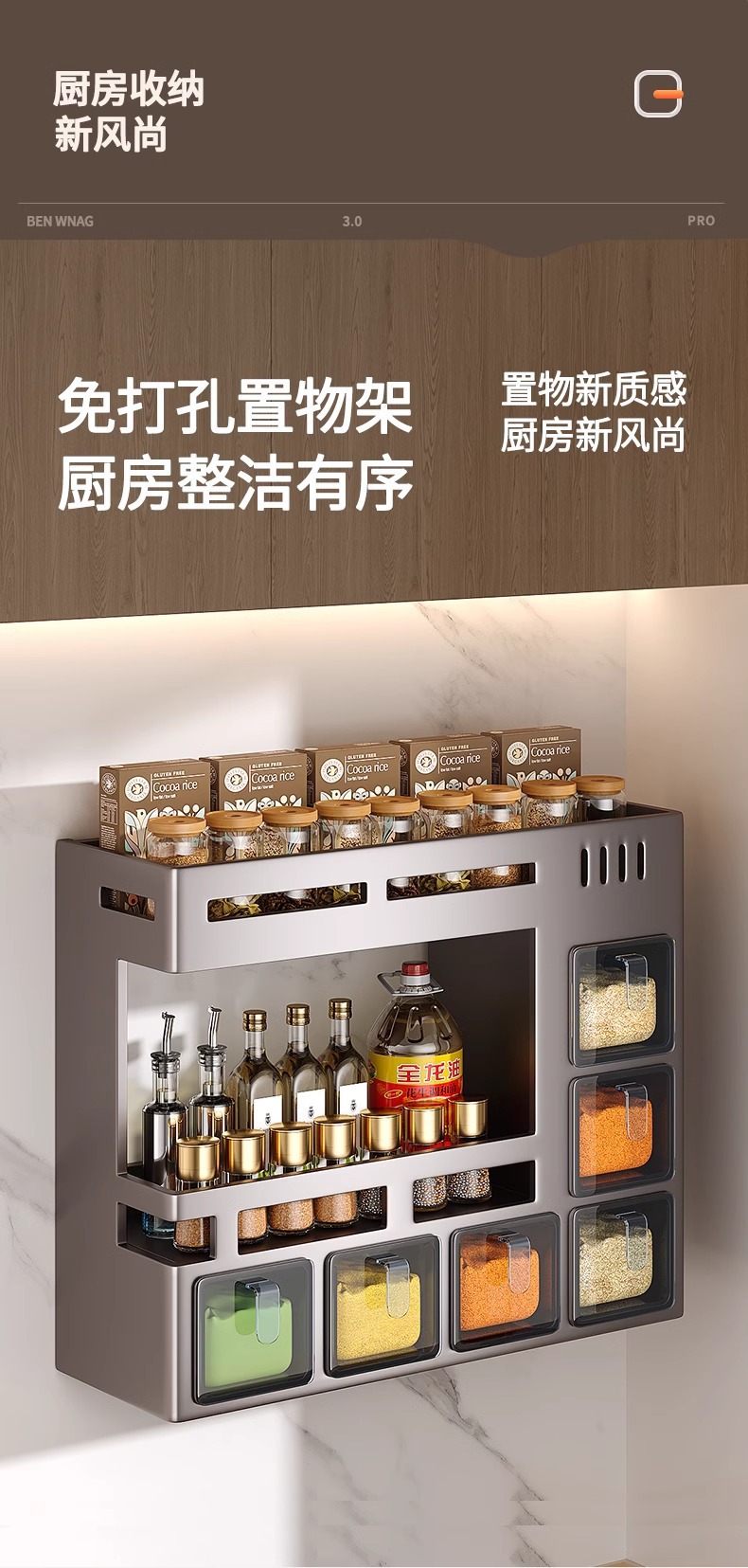 주방 컨디셔닝 박스 스토리지 랙 펀치가없는 벽걸이 형 랙 컨디셔닝 병 컨디셔닝 세트 이동식 스토리지 랙