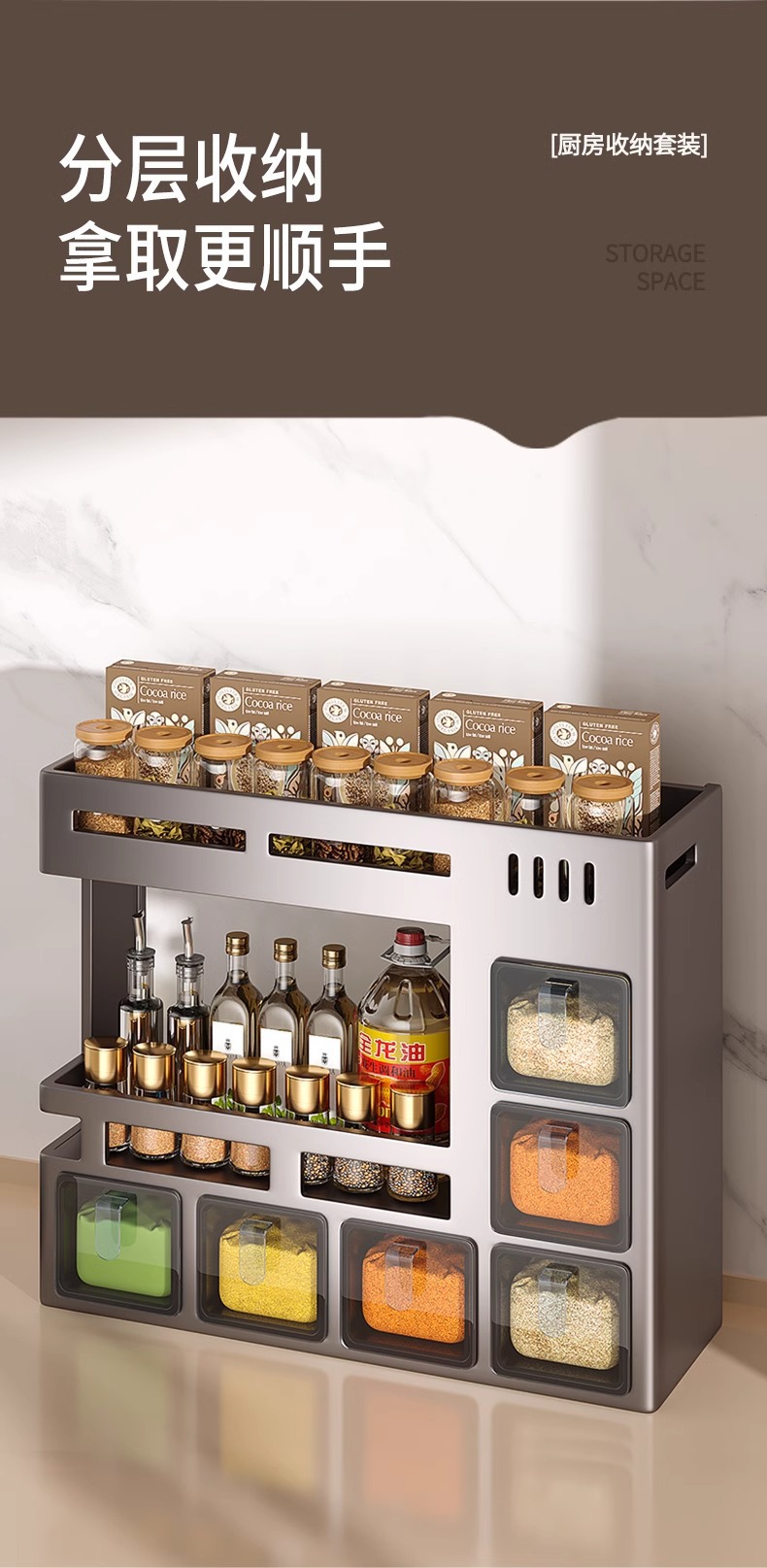• [건그레이 플래그십 모델] 더블 레이어 37.5CM 5칸 + 양념숟가락