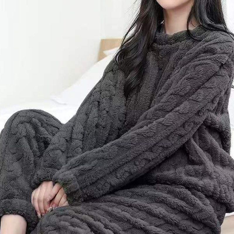 플러스 벨벳 두꺼운 산호 양털 여성 잠옷 세트 봄 가을 겨울 2024 새로운 홈웨어 투피스 세트