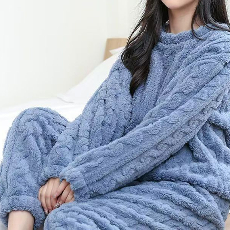 플러스 벨벳 두꺼운 산호 양털 여성 잠옷 세트 봄 가을 겨울 2024 새로운 홈웨어 투피스 세트스토어 가기