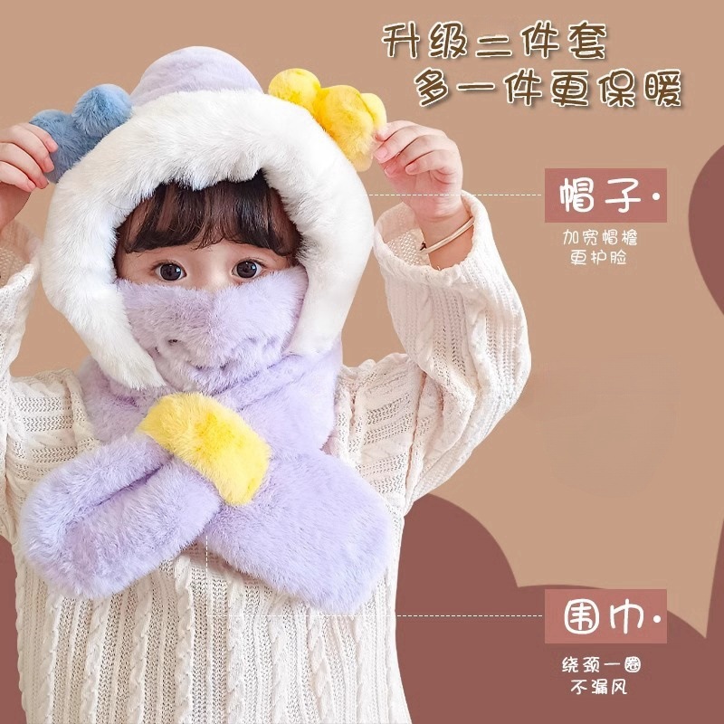 겨울철 여아용 귀여운 어린이 모자와 스카프, 남아 및 여아용 두꺼운 스쿨 스카프, 방한 및 따뜻한 스카프, 레이펑 모자스토어 가기