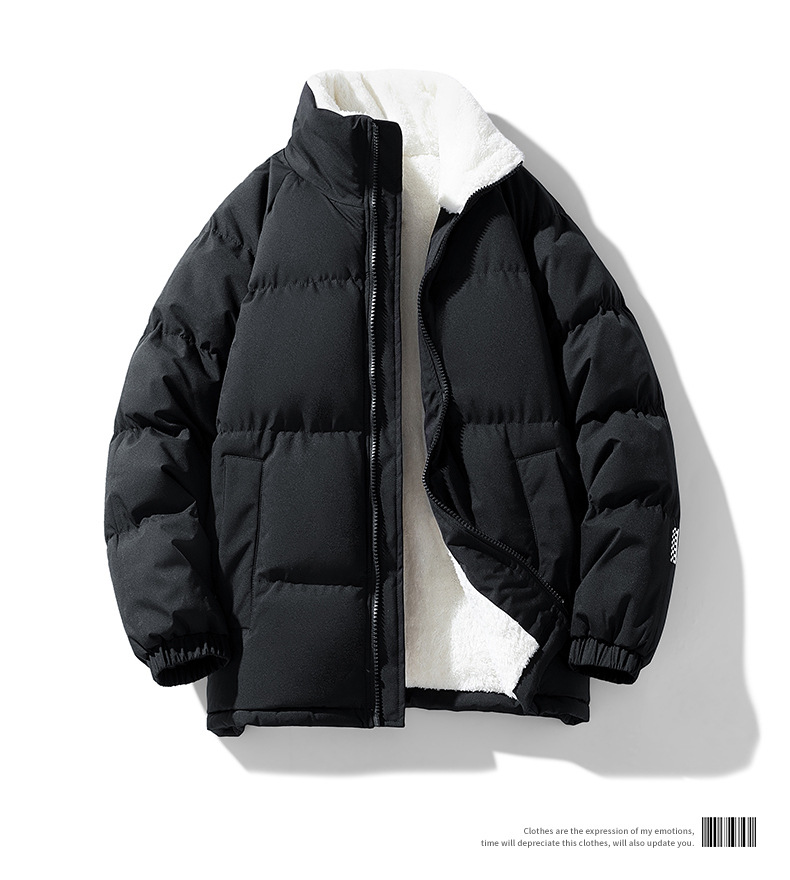겨울 두꺼운 코튼 패딩 의류 남성용 한국 스타일 기모 따뜻한 코튼 패딩 재킷 남성용 루즈 캐주얼 자켓 남성과 여성의 세련된 코튼 패딩 재킷