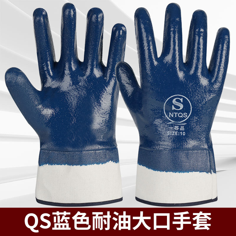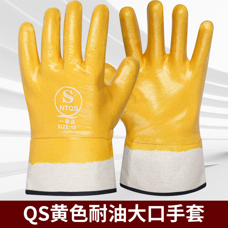 장갑 내유성 접착제 담근 큰 입 넓은 노란색 파란색 니트릴 캔버스 노동 보호 작업 미끄럼 방지 기계 오일 방지 산업 장갑스토어 가기