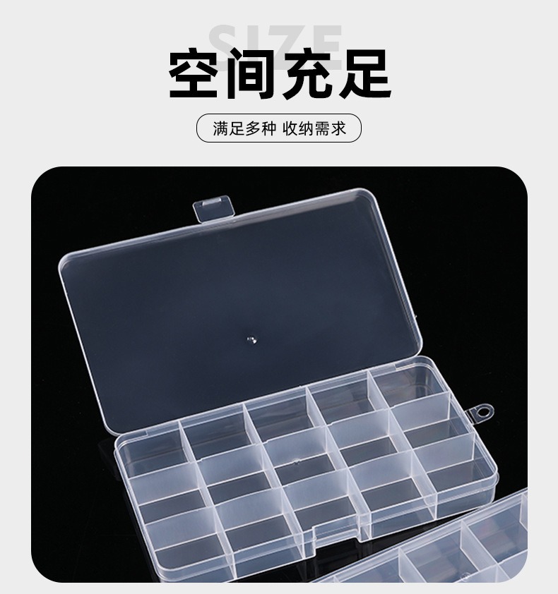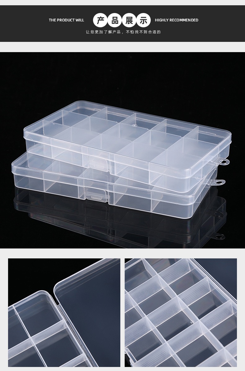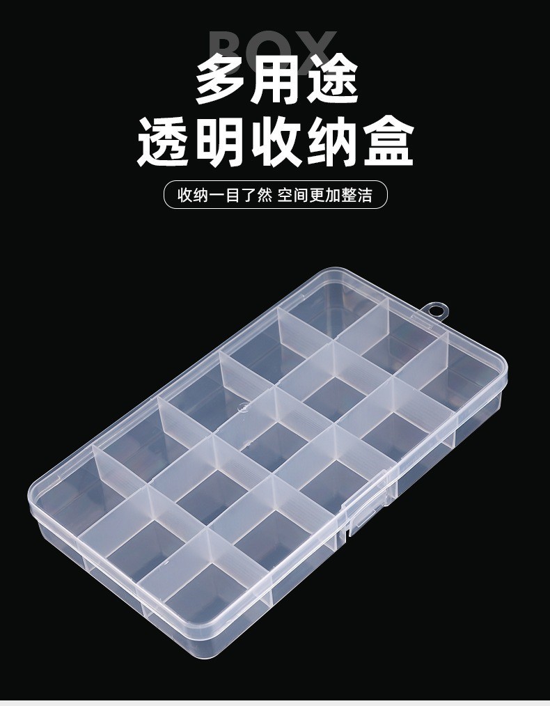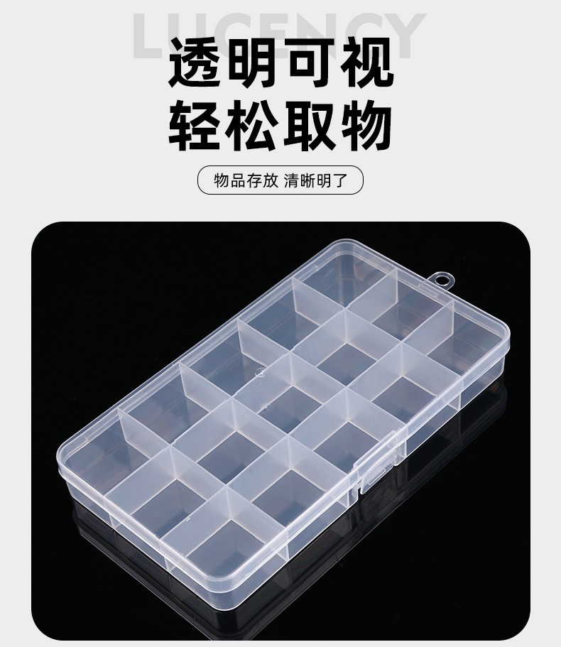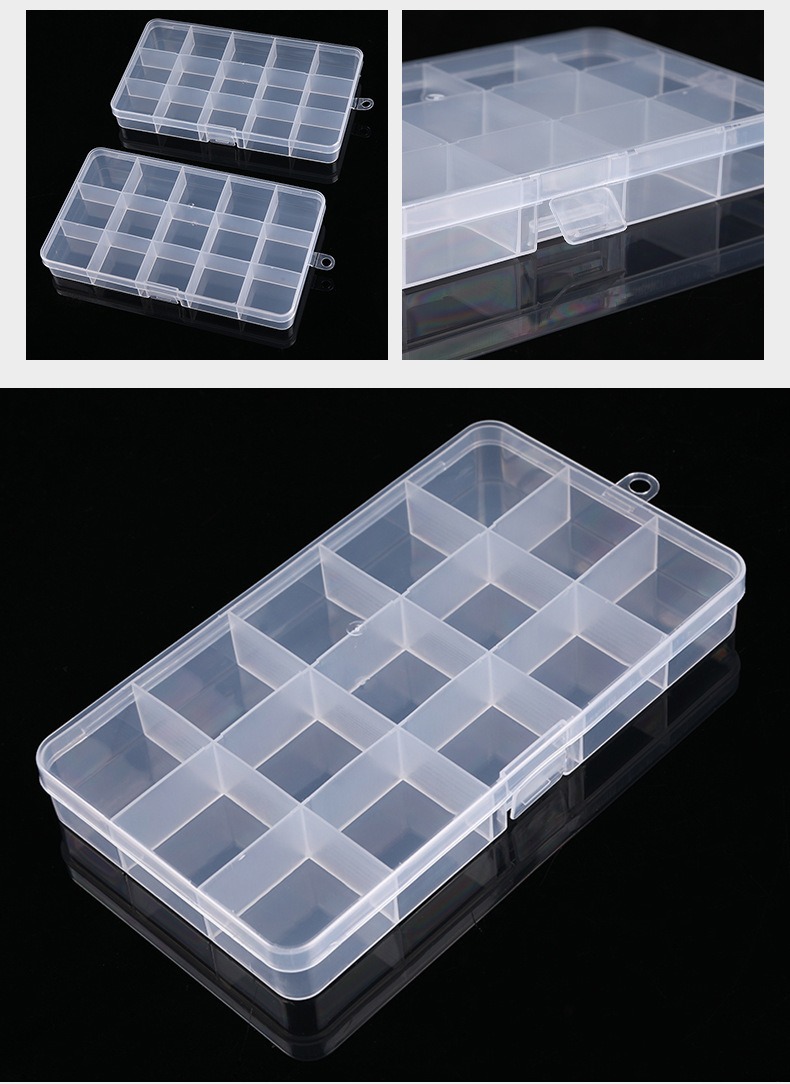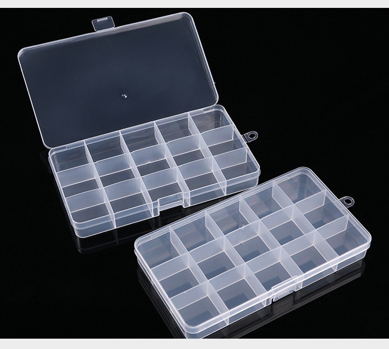 15 그리드 고정 원피스 더블 버튼 투명 플라스틱 저장 상자 구슬 네일 하드웨어 도구 보석 낚시 기어 PP 상자스토어 가기