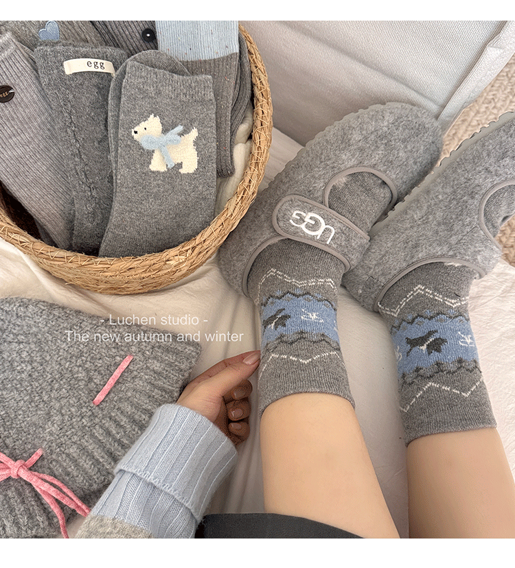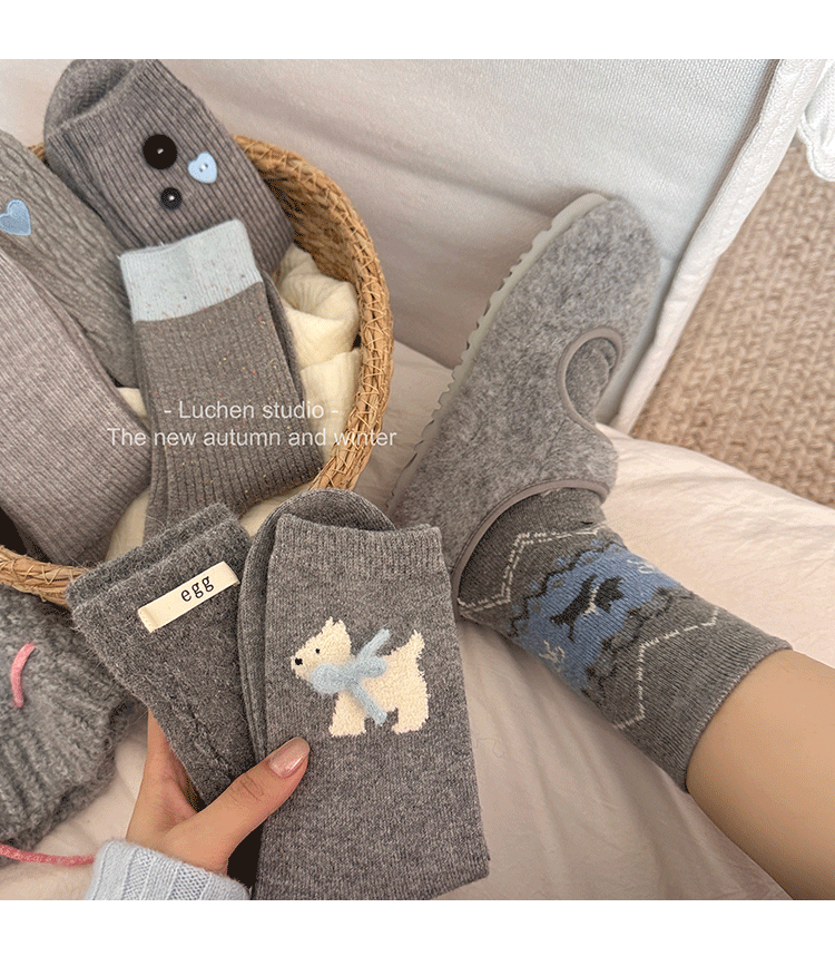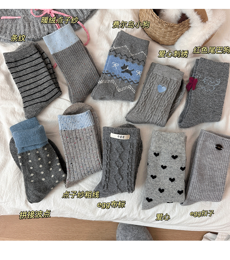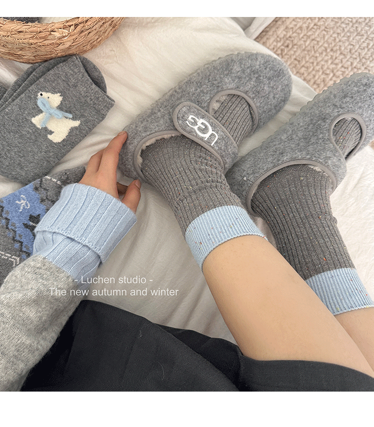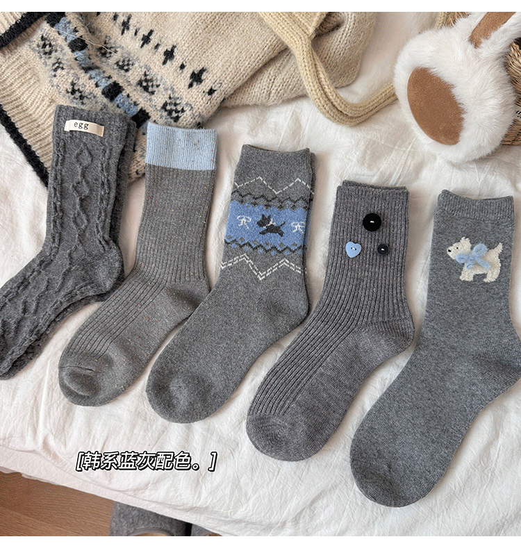 한국 파란색과 회색 색상 일치 "양모 양말 어린이 양말 가을과 겨울 새로운 따뜻한 두꺼운 회색 조커 파일 양말스토어 가기