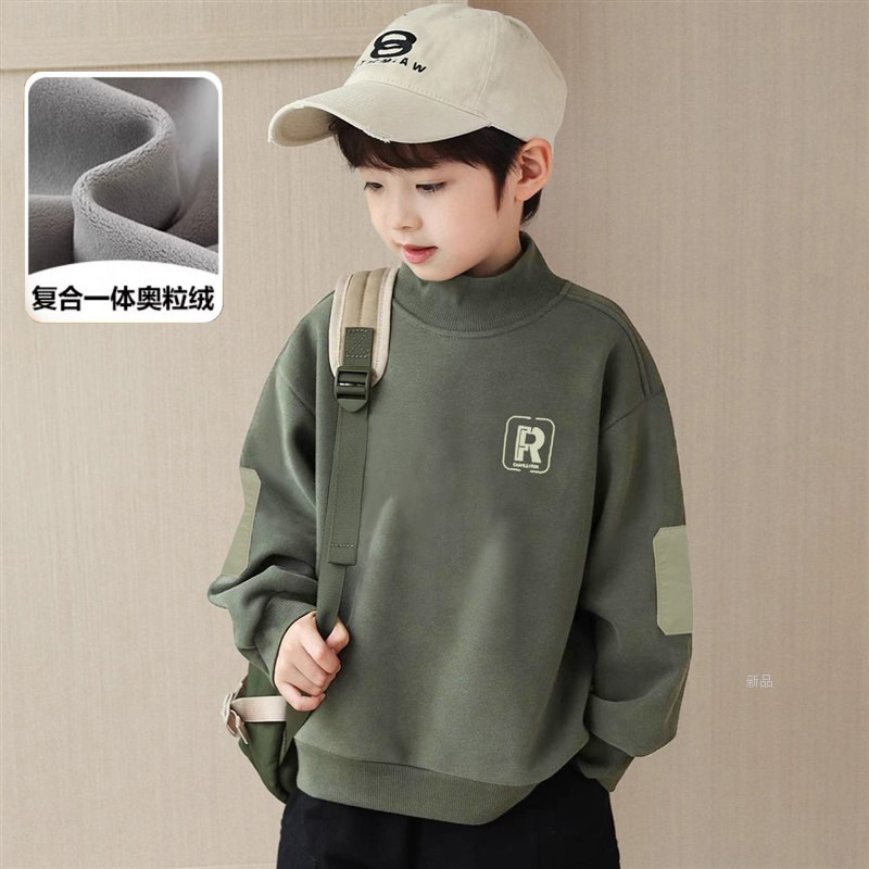 남학생 기모 땀 겨울 어린이 절반 높이 칼라 새로운베이스 중형 및 대형 소년의 두꺼운 따뜻한 캐주얼 탑