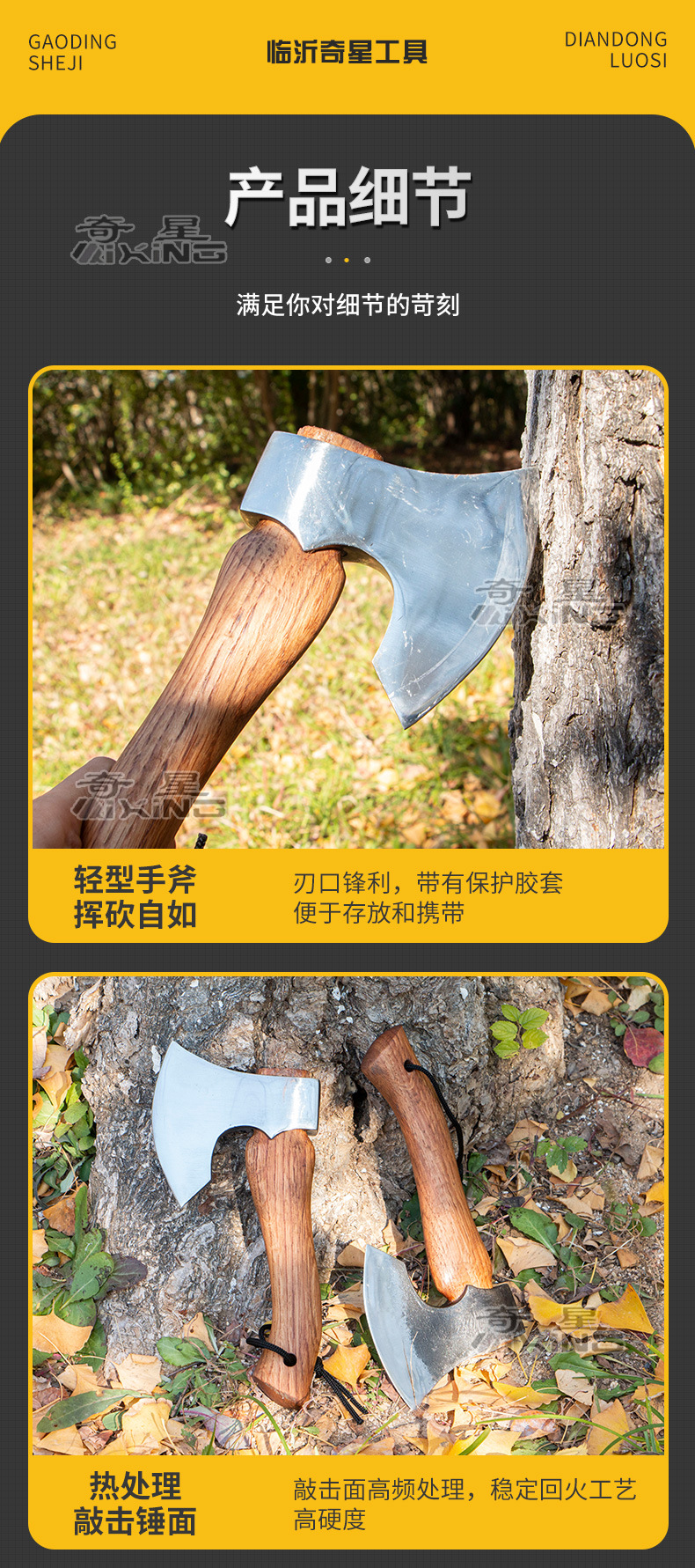 • 직선 손잡이 호두나무 손 도끼