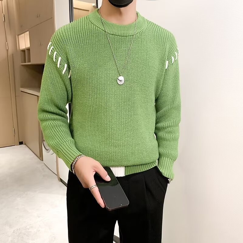 가을과 겨울 올 매치 바닥 셔츠 남성 도매 스웨터 따뜻한 조수 브랜드 라운드 넥 스웨터 남성용 스웨터스토어 가기