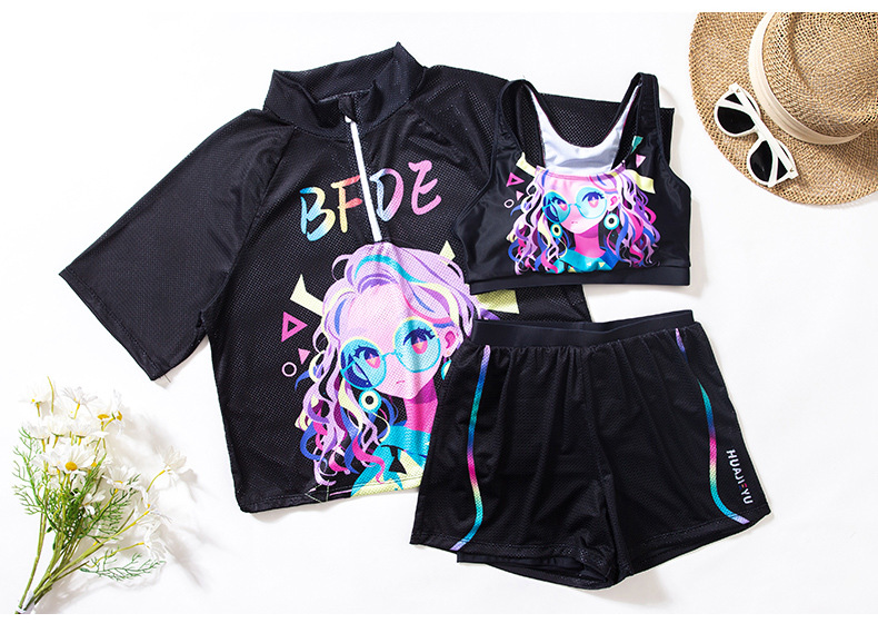 수영복 여성 2024 새로운 하이 엔드 센스 스플릿 인 스타일 벨리 커버 슬림 수영복 3 피스 세트 보수적 수영복스토어 가기