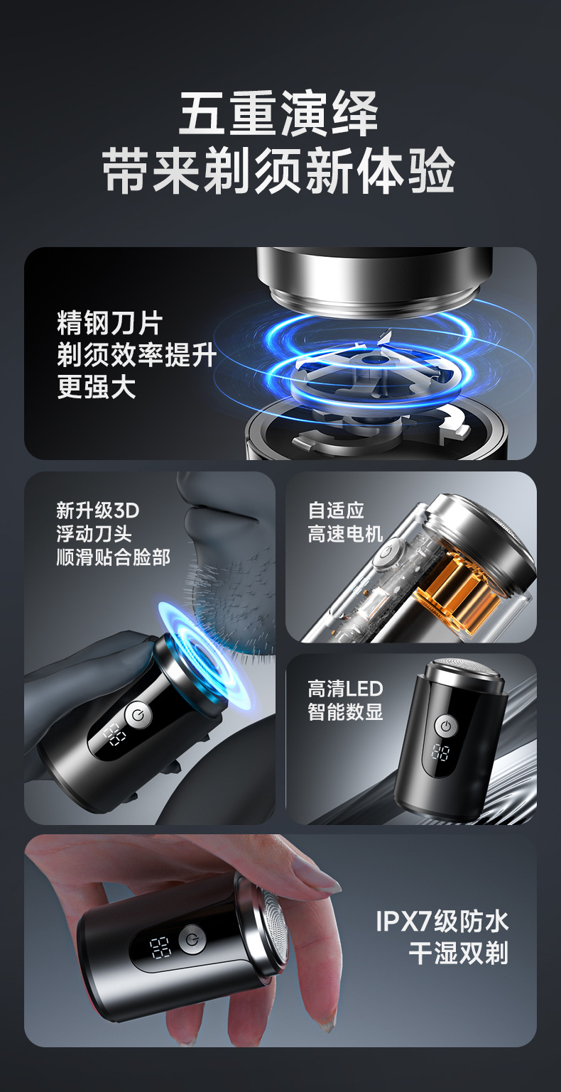 새로운 미니 면도기 전기 남성 여행 휴대용 작은 강철 대포 면도기 전신 방수 충전