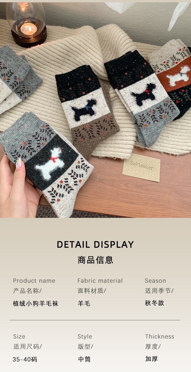 귀여운 강아지 울 양말 어린이 가을과 겨울 중간 길이의 양말 페어랜드 빈티지 더미 양말 냄비 원사 따뜻한 스타킹