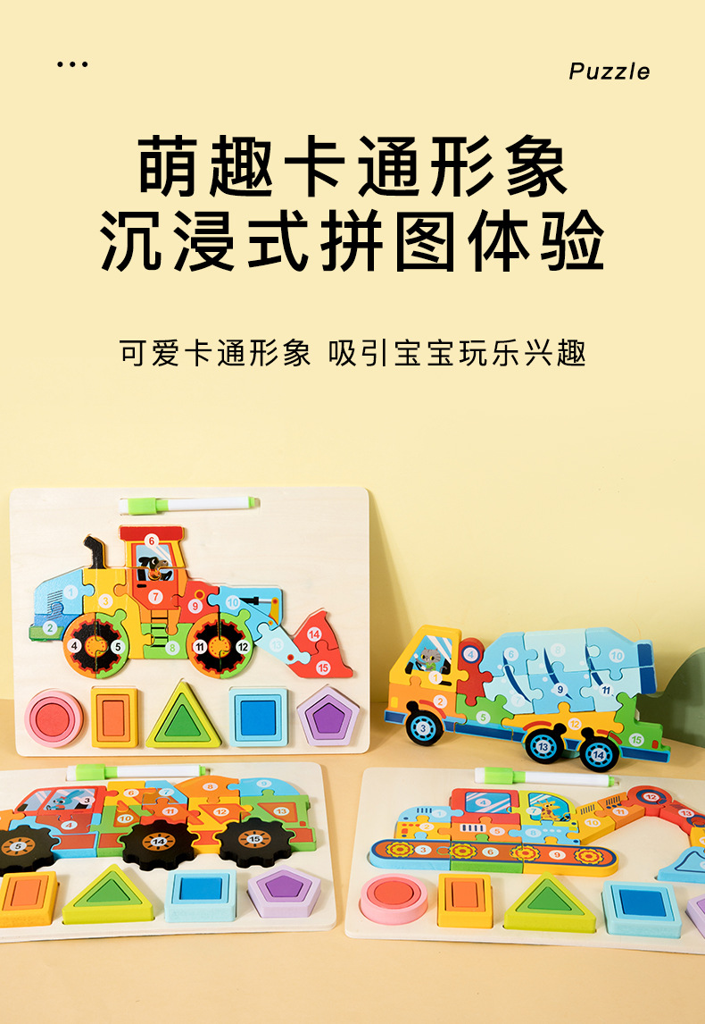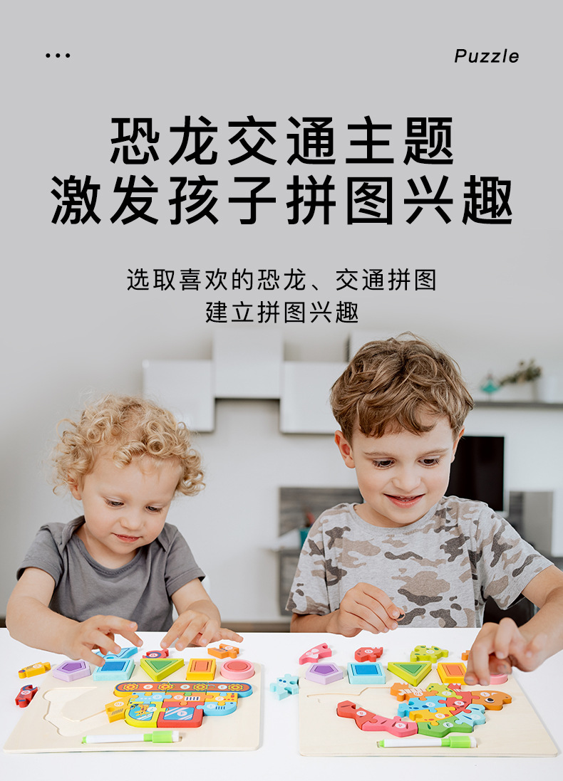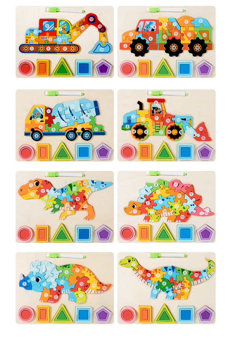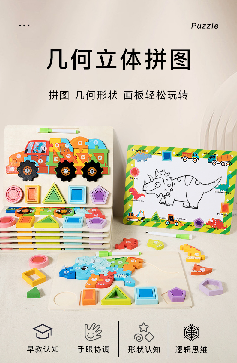 국경 간 신제품 기하학적 모양 공룡 교통 직소 퍼즐 스케치 보드 다기능 조기 교육 및 정보 빌딩 블록 장난감스토어 가기