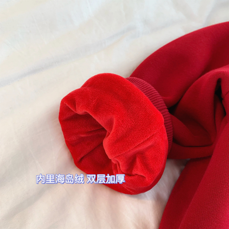 2025 년 신년복 남성복 가을과 겨울 어린이 기모 착용 타이드 붉은 새해 축제 뱀의 평화와 기쁨