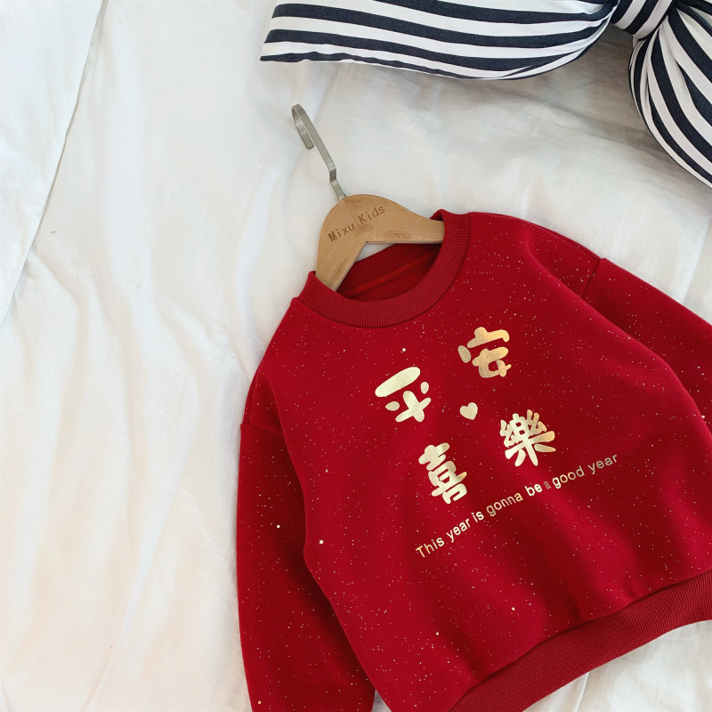 2025 년 신년복 남성복 가을과 겨울 어린이 기모 착용 타이드 붉은 새해 축제 뱀의 평화와 기쁨스토어 가기