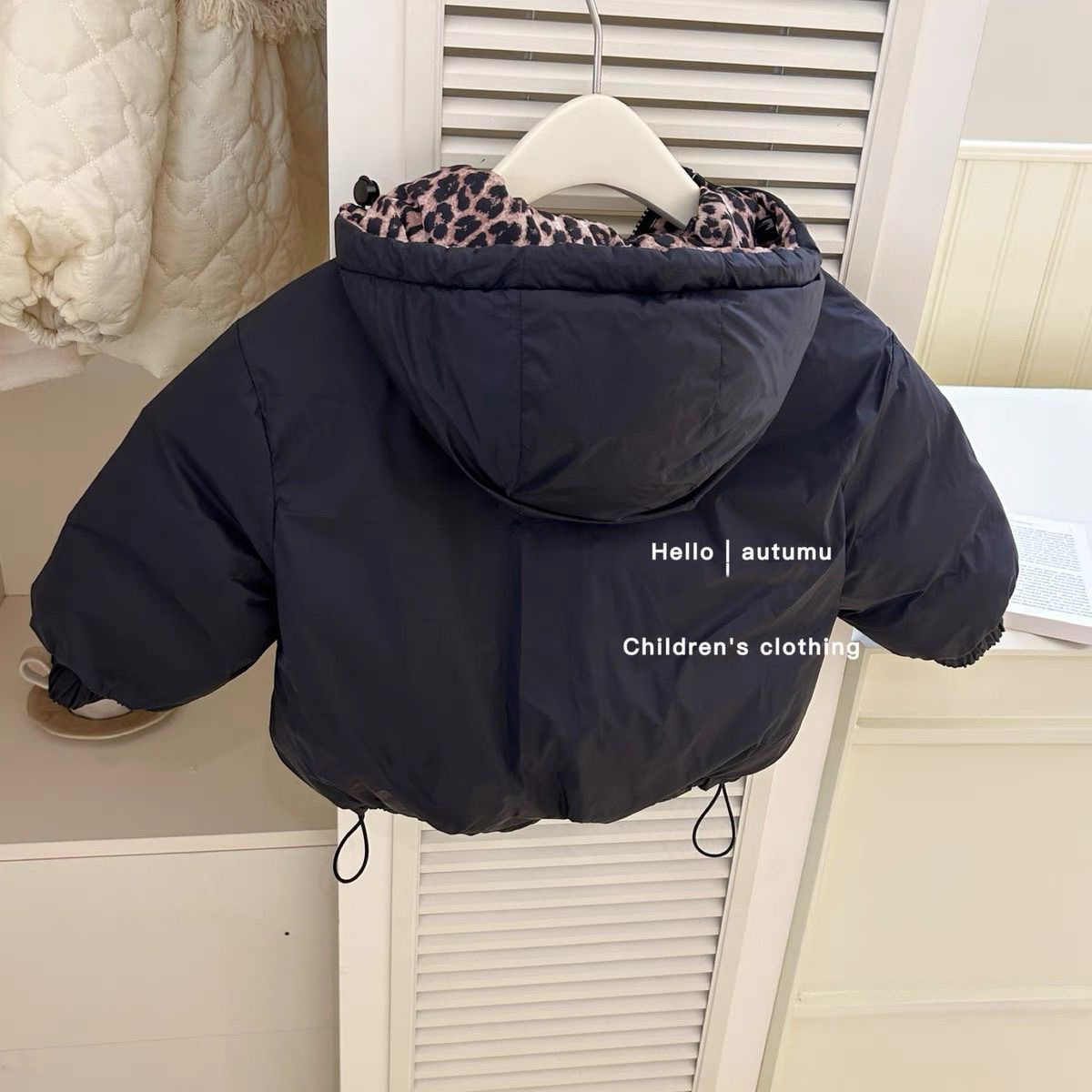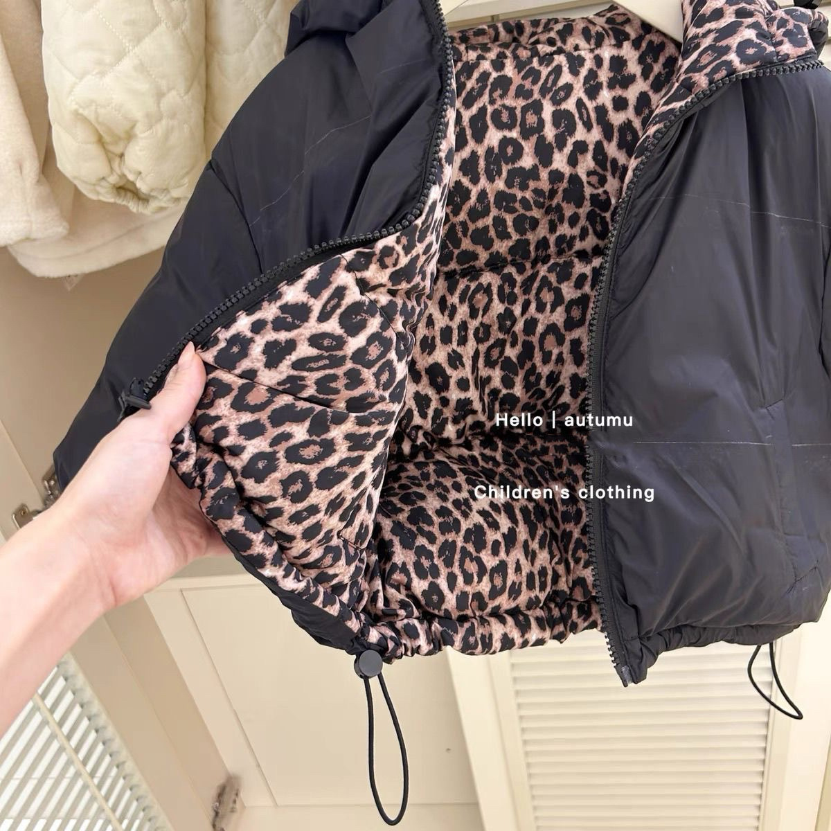 아이들은 남학생과 여학생을 위해 레오파드 무늬 면화 패딩 재킷 겨울 2024 를 착용합니다. 따뜻한 후드 두꺼운 코트면 패딩 재킷스토어 가기