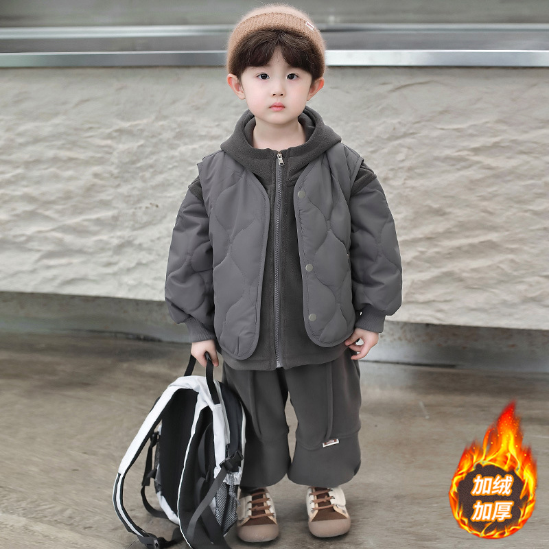 남학생 '겨울벨벳 세트 2024 새 어린이 서양식 두꺼운 겨울복 아기 한국식 3 인조 패셔너블 조끼스토어 가기