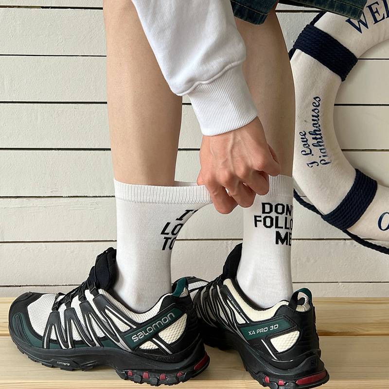 인기있는 조수 양말 도매 넓은 편지 남성 스포츠 양말 가을과 겨울 땀 흡수 스포츠 양말 공장 직접 판매스토어 가기