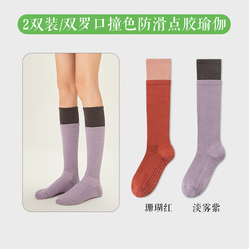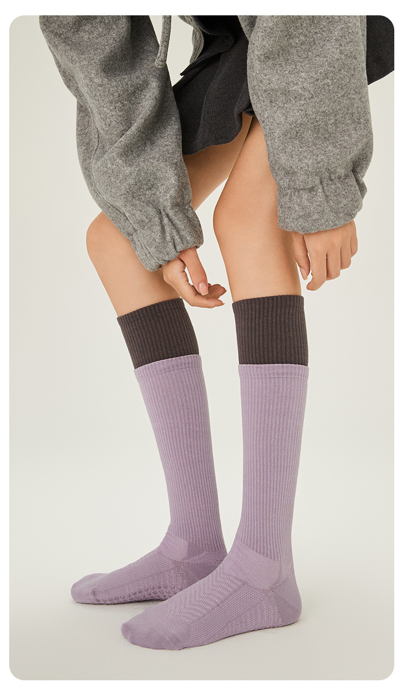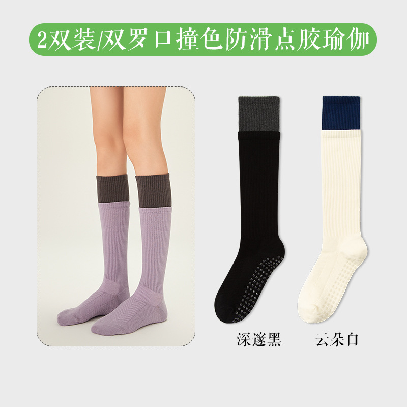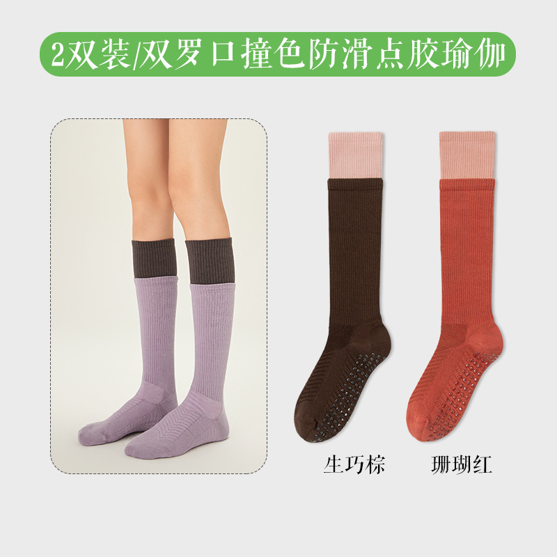 콘트라스트 컬러 요가 양말 어린이 미끄럼 방지 압력 무릎 이상 스타킹 필라테스 스포츠 피트니스 달리기 로프 점프 송아지 양말