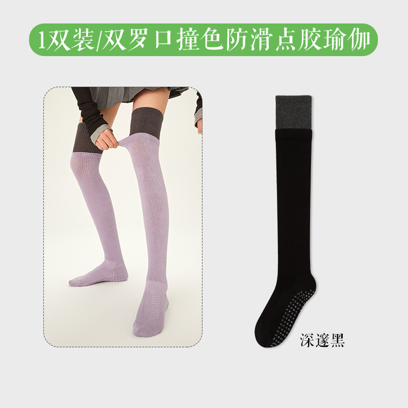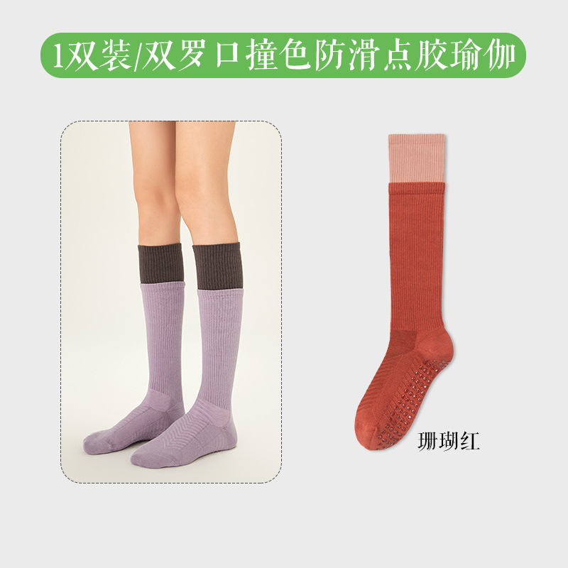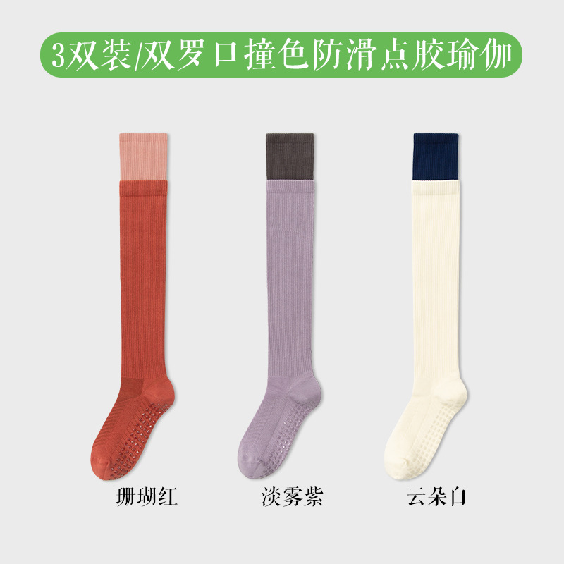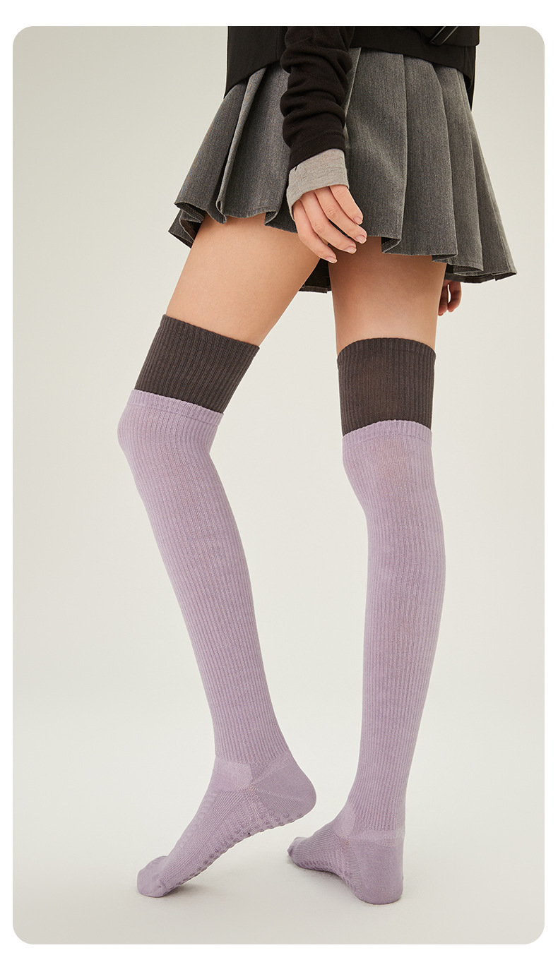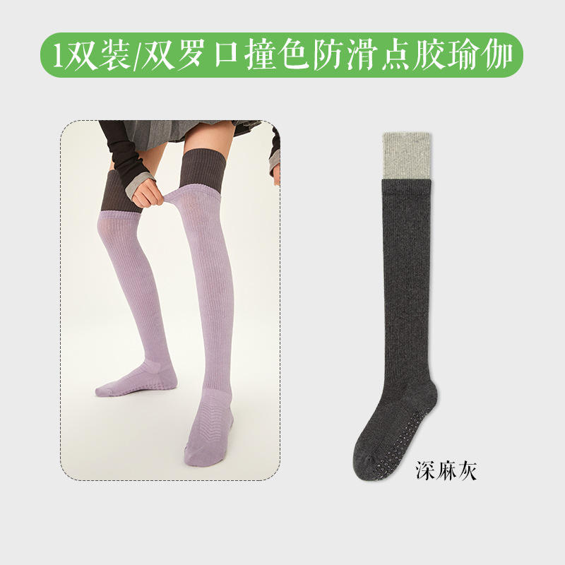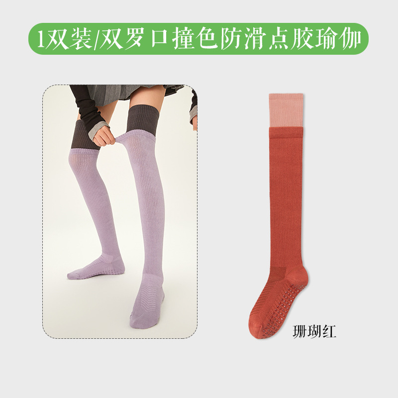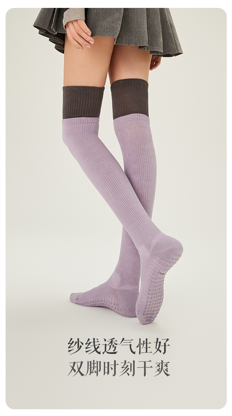 콘트라스트 컬러 요가 양말 어린이 미끄럼 방지 압력 무릎 이상 스타킹 필라테스 스포츠 피트니스 달리기 로프 점프 송아지 양말스토어 가기
