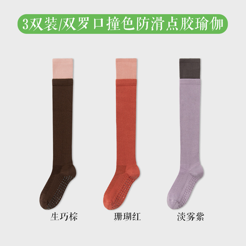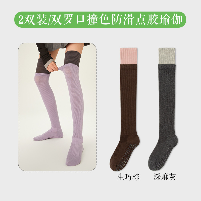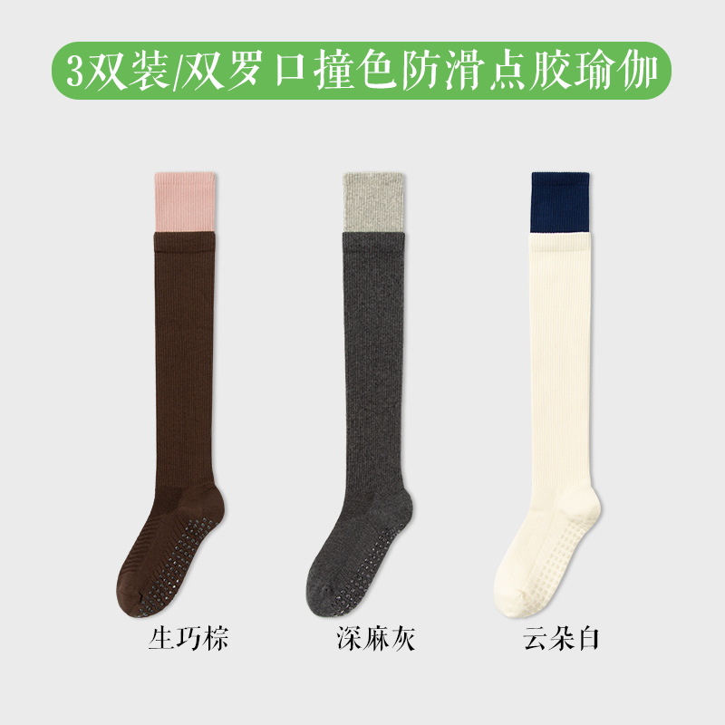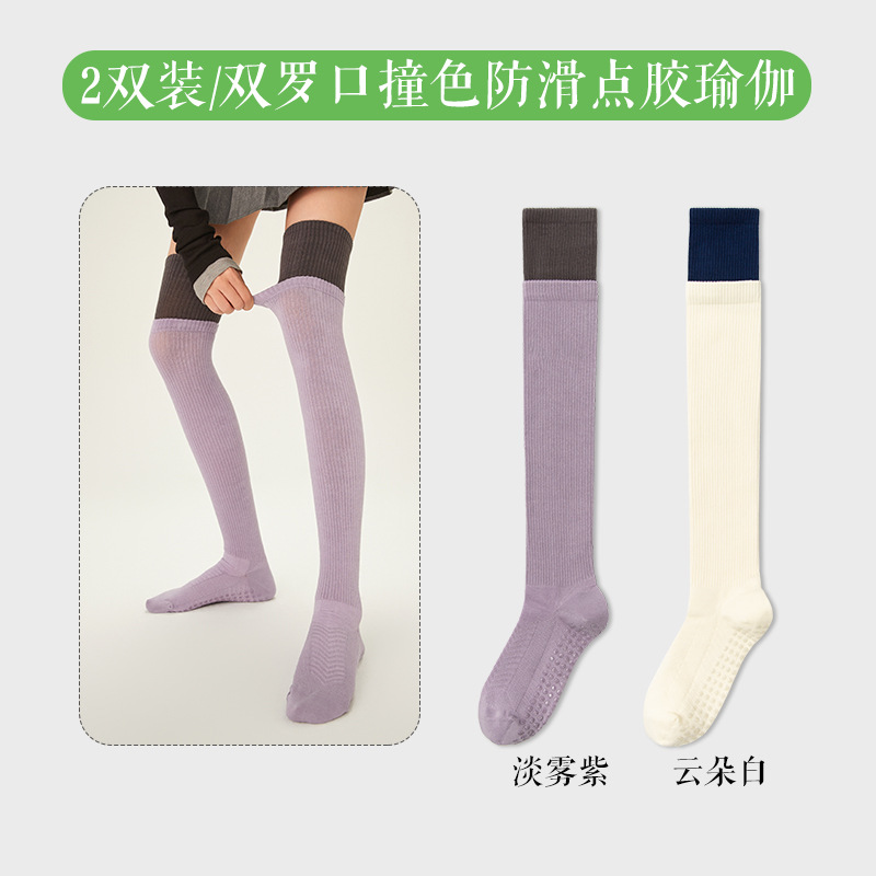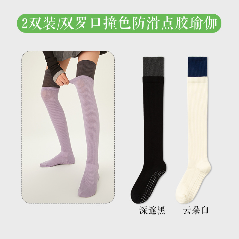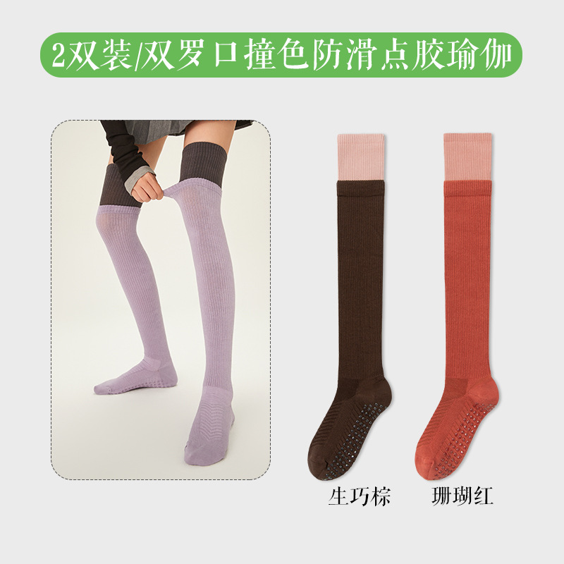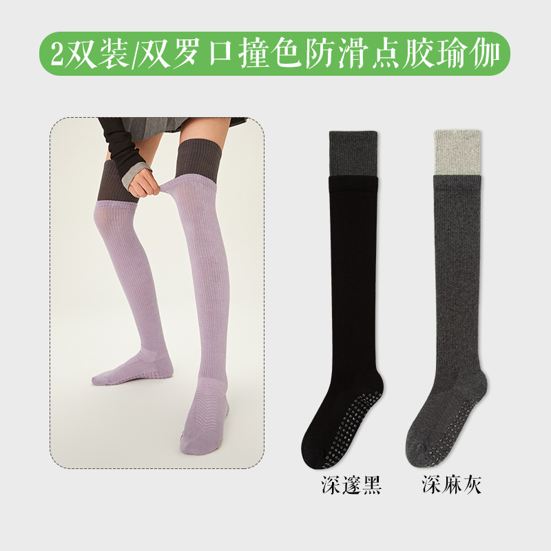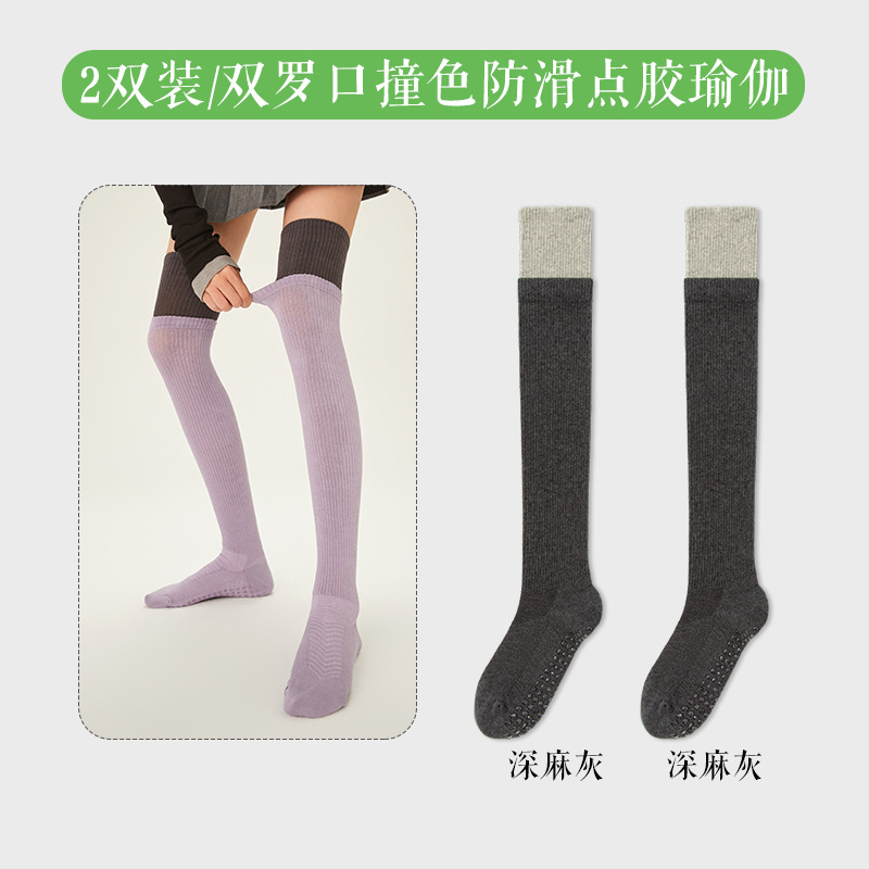 콘트라스트 컬러 요가 양말 어린이 미끄럼 방지 압력 무릎 이상 스타킹 필라테스 스포츠 피트니스 달리기 로프 점프 송아지 양말스토어 가기