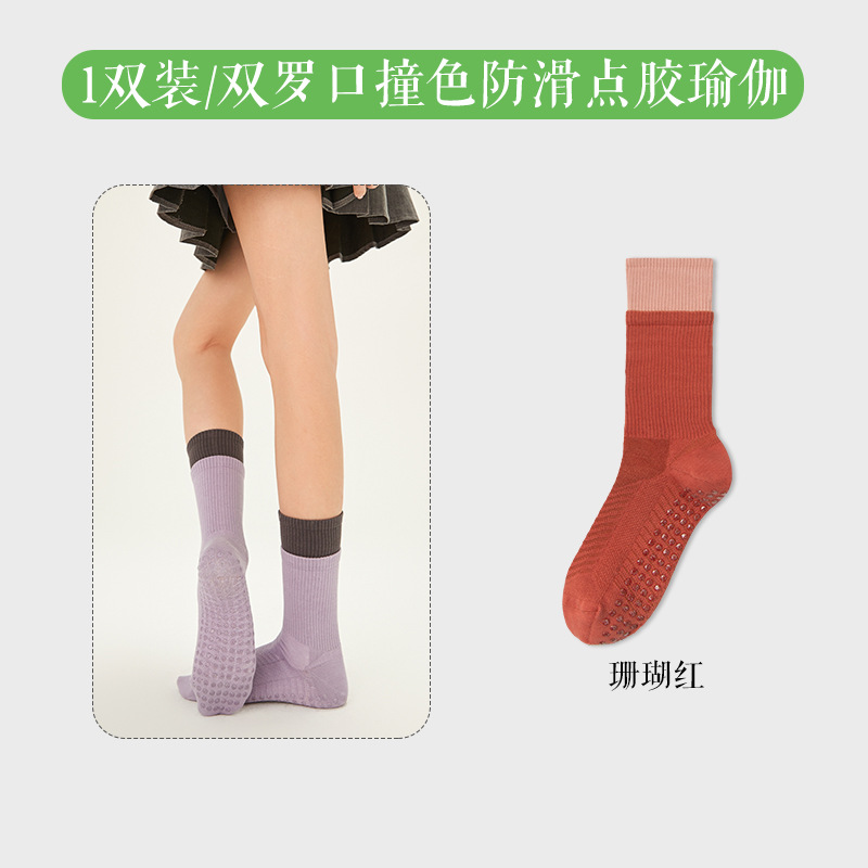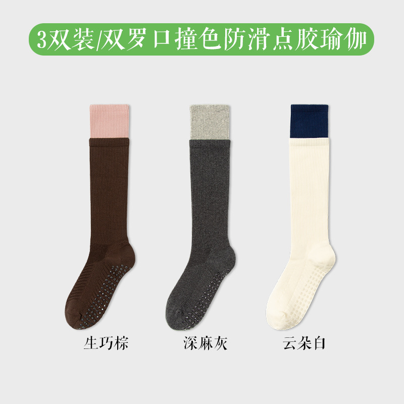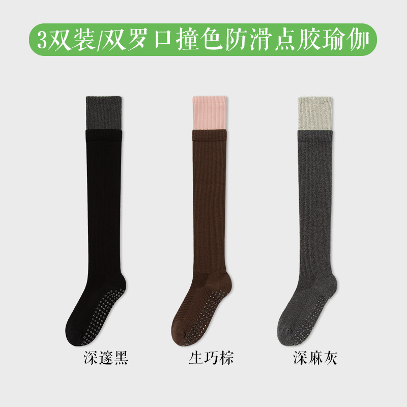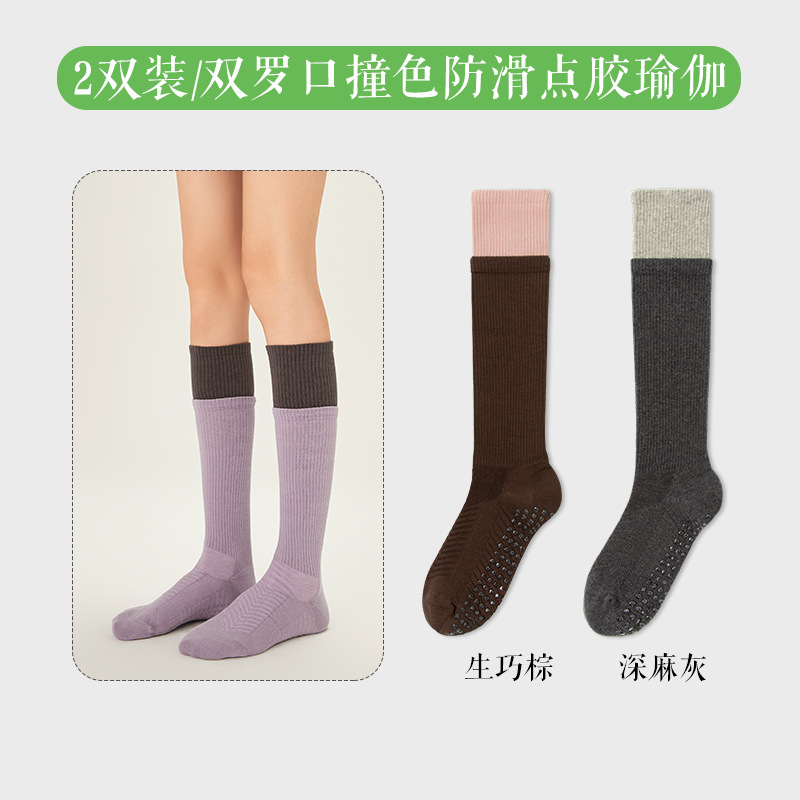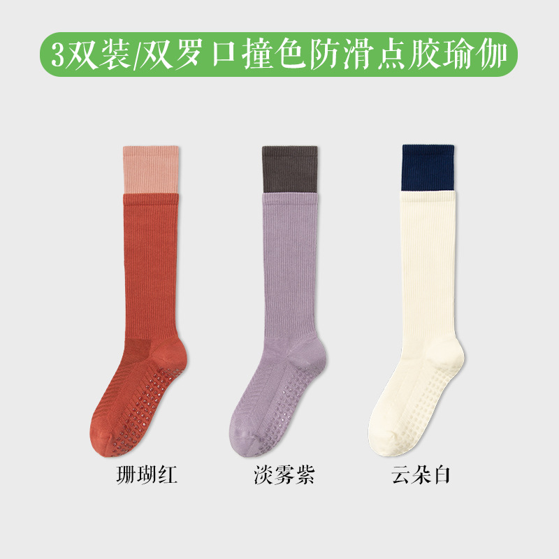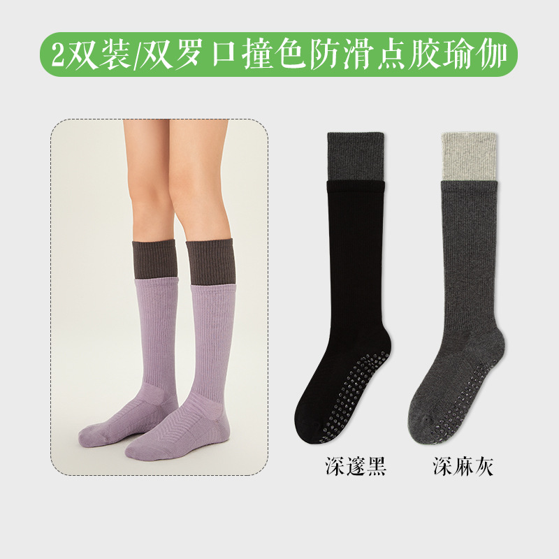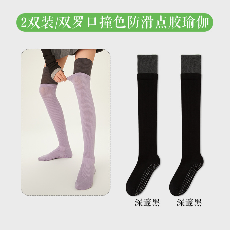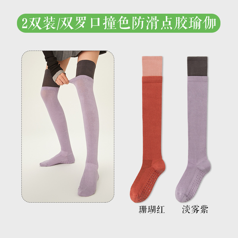 콘트라스트 컬러 요가 양말 어린이 미끄럼 방지 압력 무릎 이상 스타킹 필라테스 스포츠 피트니스 달리기 로프 점프 송아지 양말스토어 가기