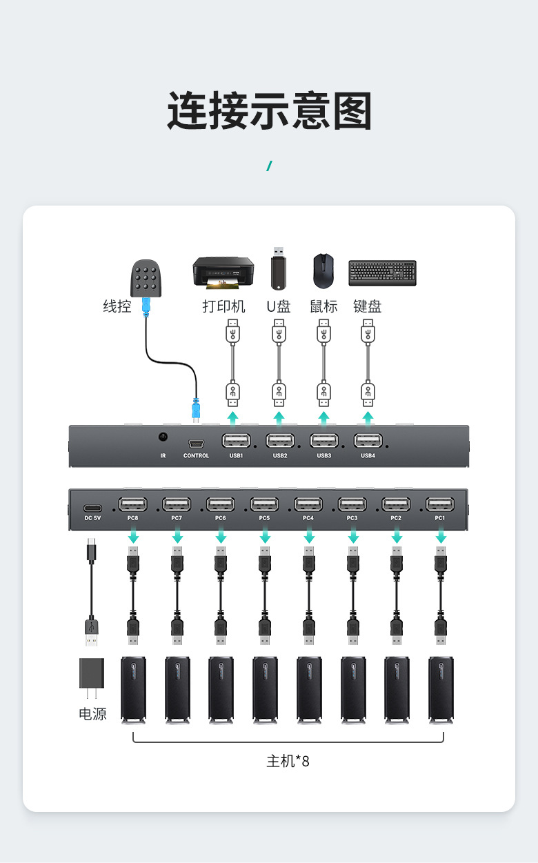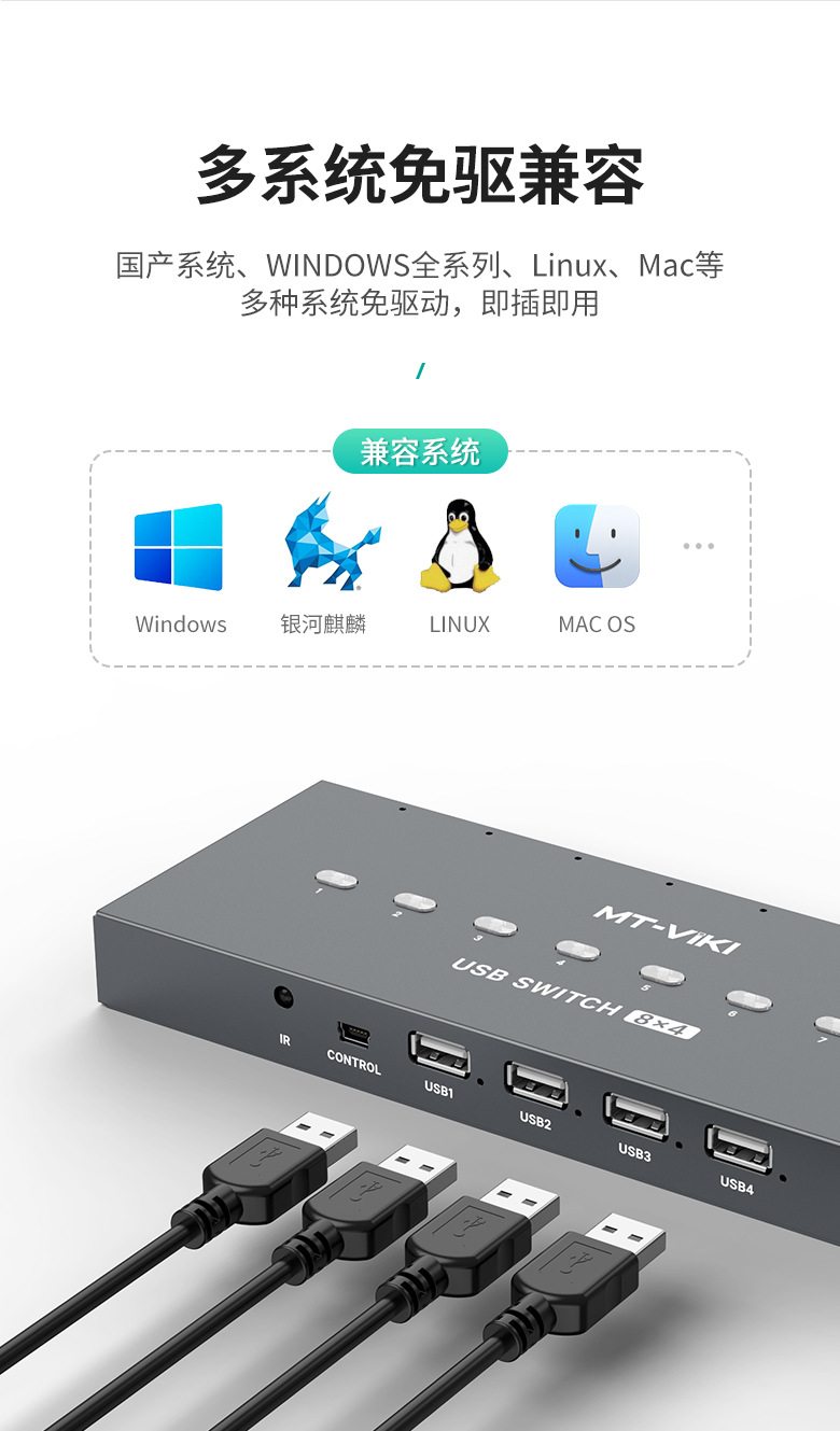 원격 제어 키보드와 마우스 프린터 USB 디스크 공유 MT-SU84 4 아웃 USB 스위치에서 Maito 순간 8