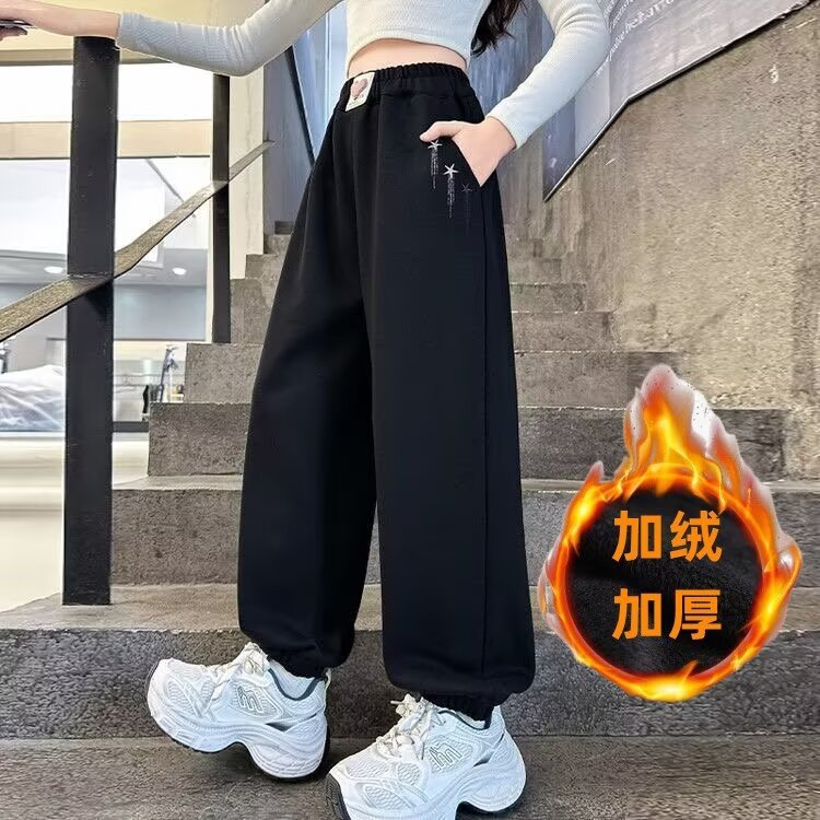 여자 바지 기모 두꺼운 가을과 겨울 원피스 다리 묶음 캐주얼 바지 아동용 겨울 소녀 스포츠 바지