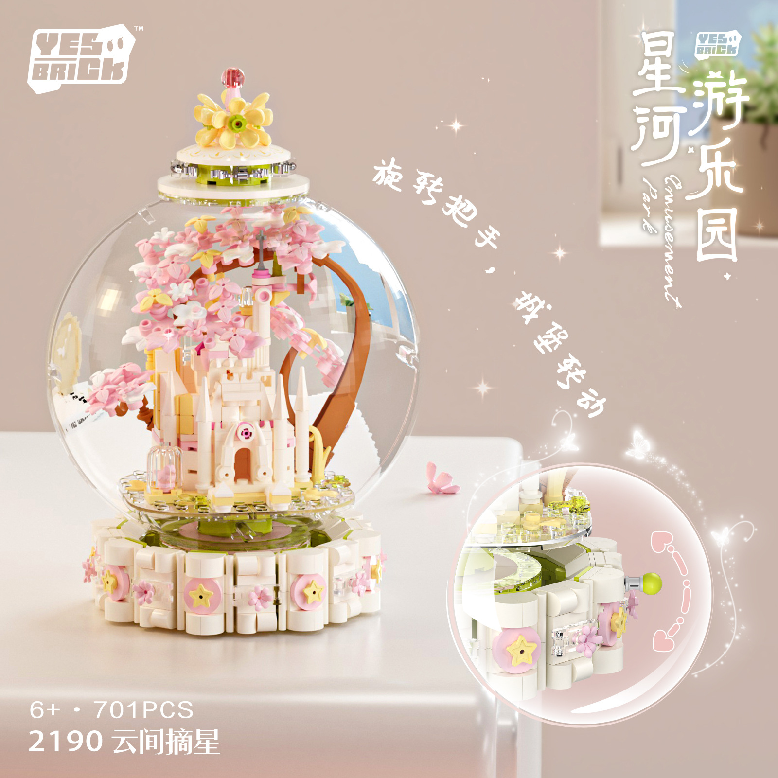 크리스탈 볼 장난감 건물 블록 장식 Xinghe 놀이 공원 회전 판타지 성 조립 장난감 작은 소녀 선물