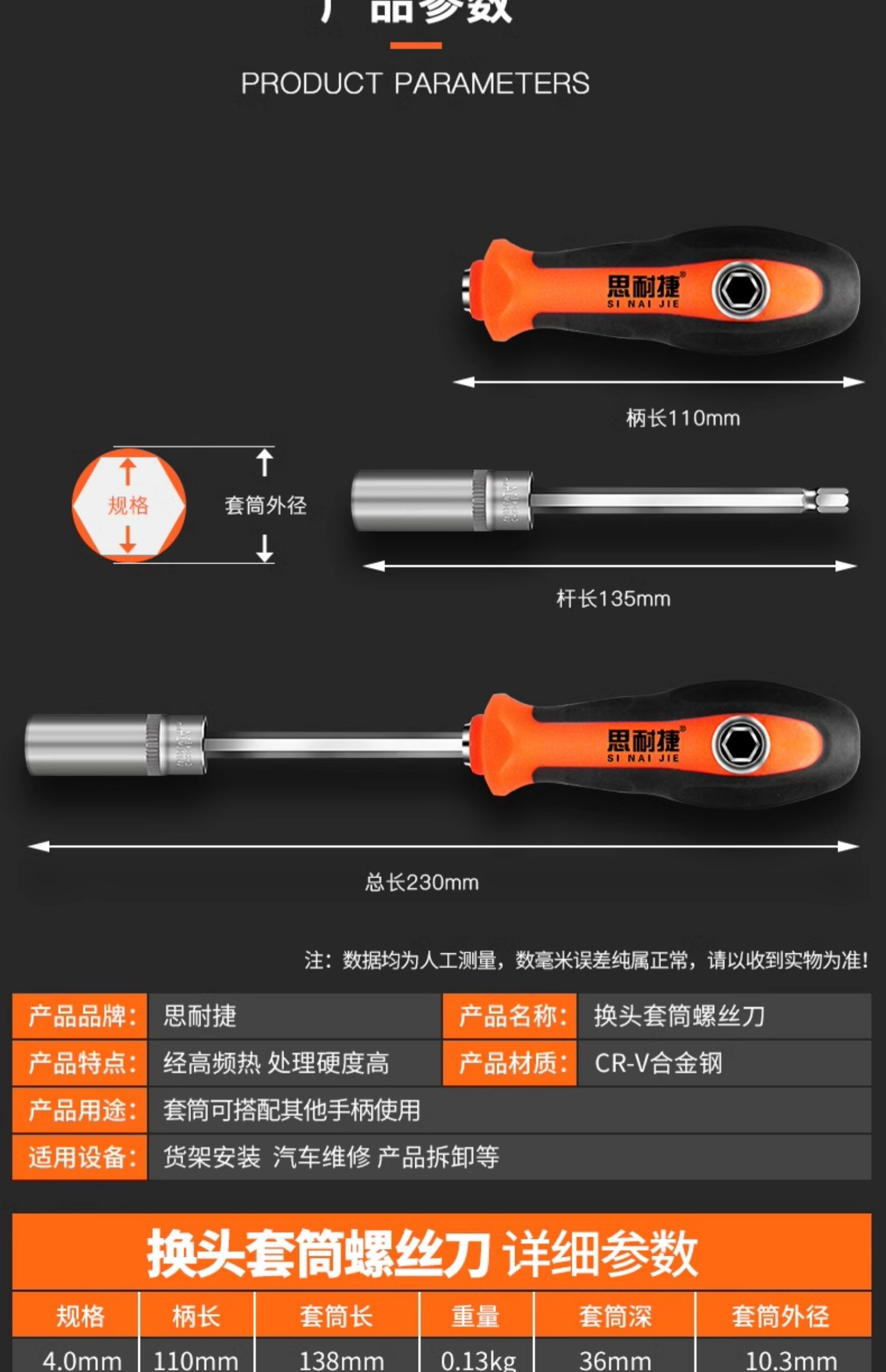 • 10mm 깊은 구멍 소켓 드라이버 + 8506 핸들 [M6 너트에 적용 가능]
