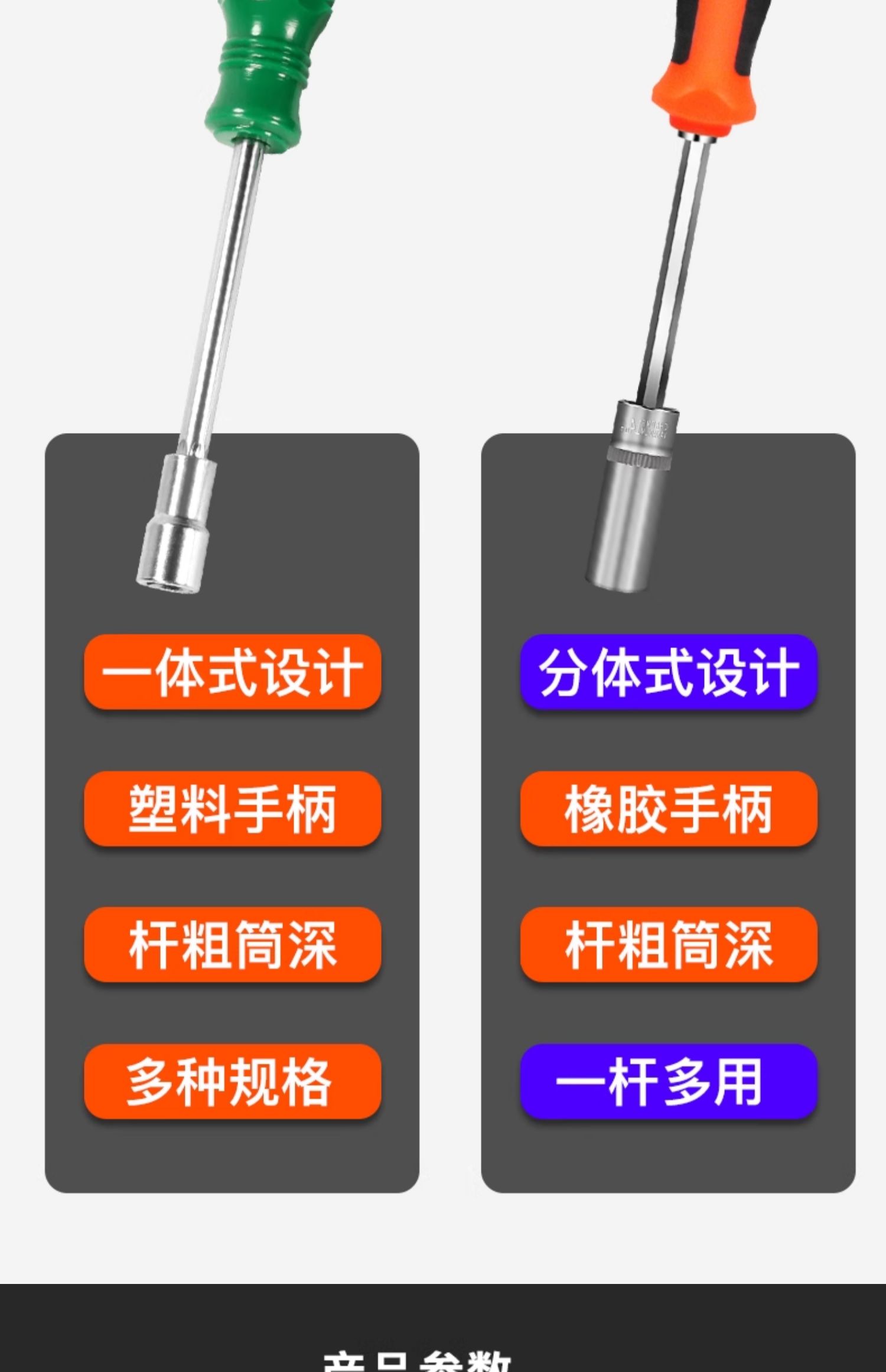 • 9개의 4-14mm 깊이 구멍 소켓 드라이버 + 9개의 8506 핸들