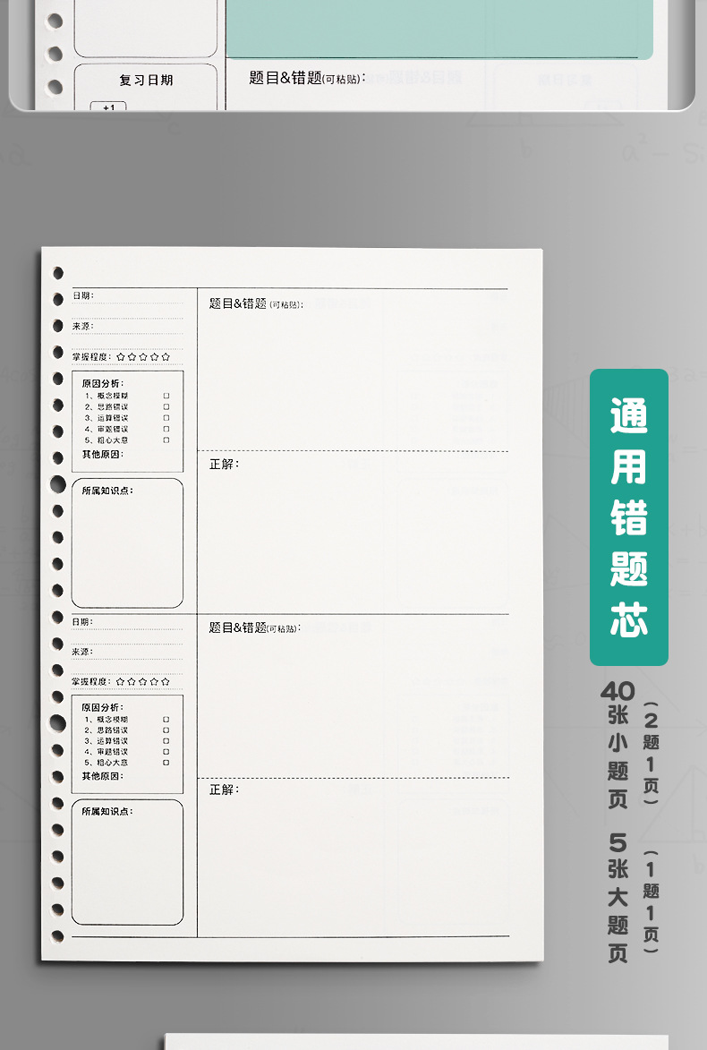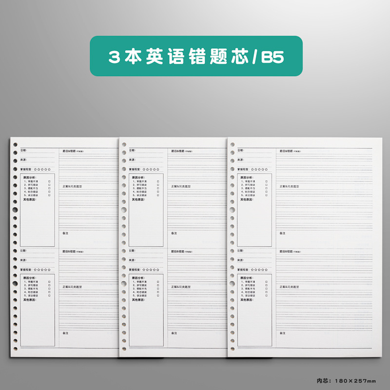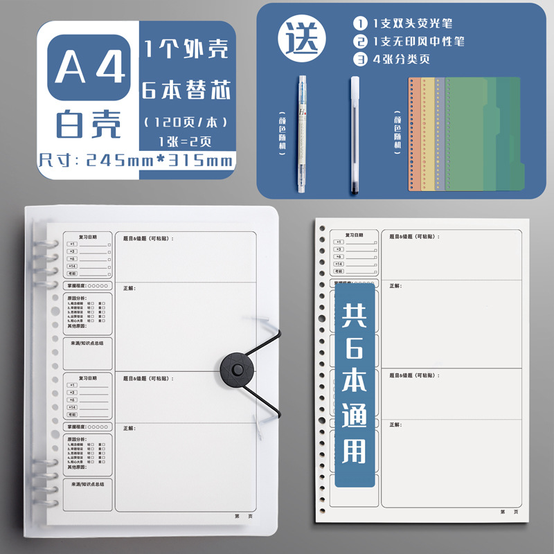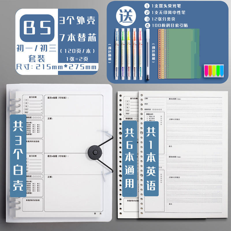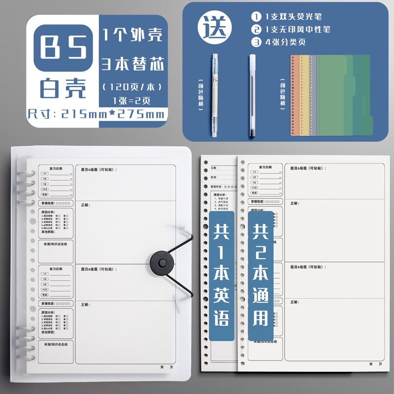 잘못된 문제 책 ● 두껍게 된 큰 오류 수정책 느슨한 잎 분리형 중학생 고등학교 대학원 입학 시험 대학생 주문 오류 수정 세트