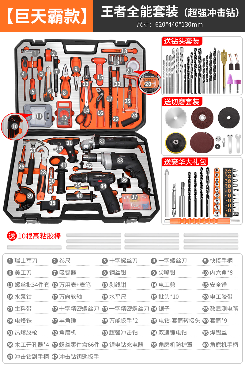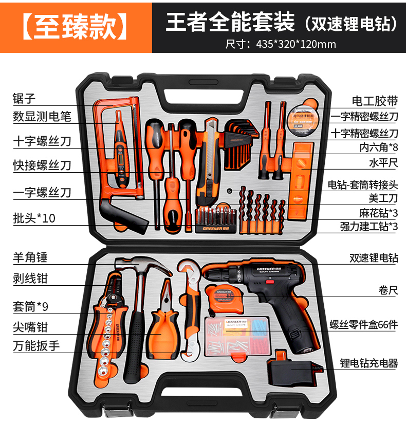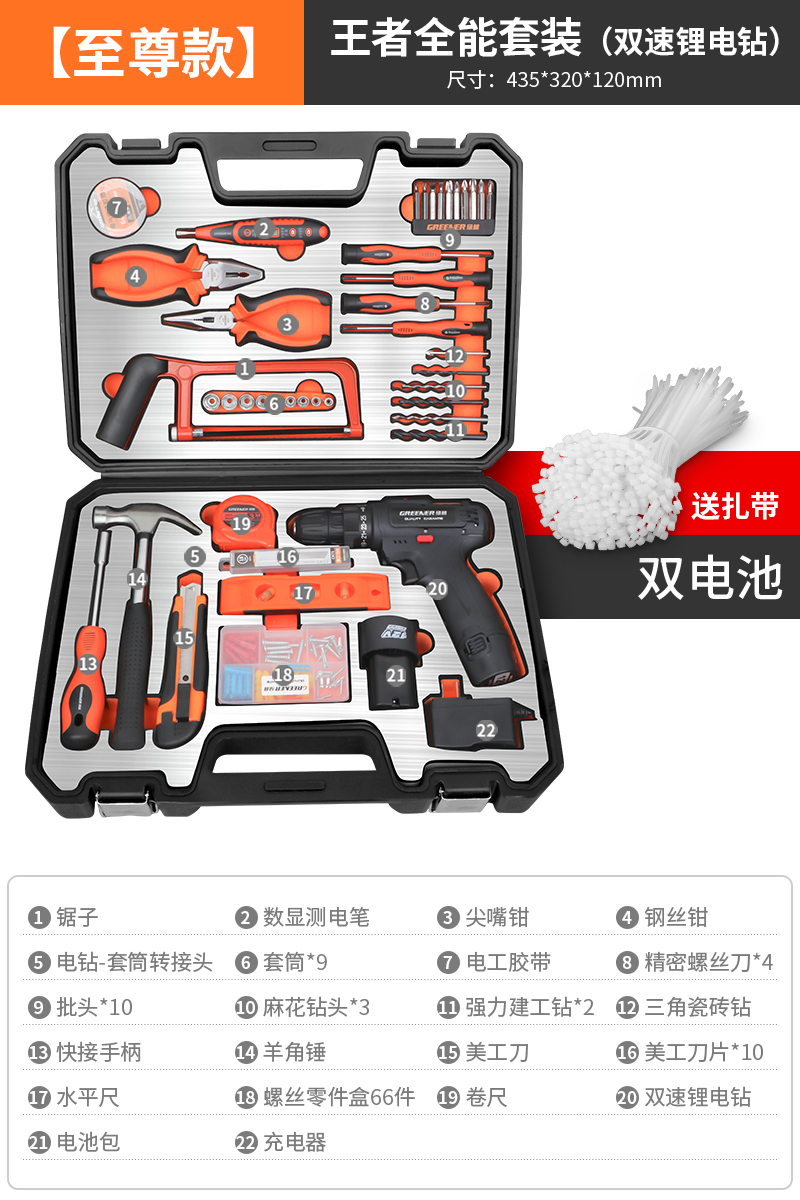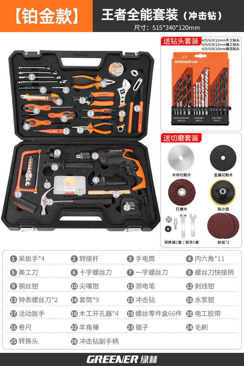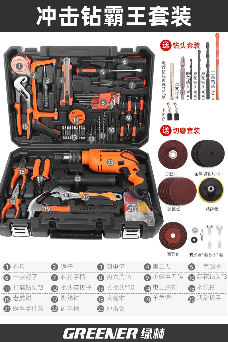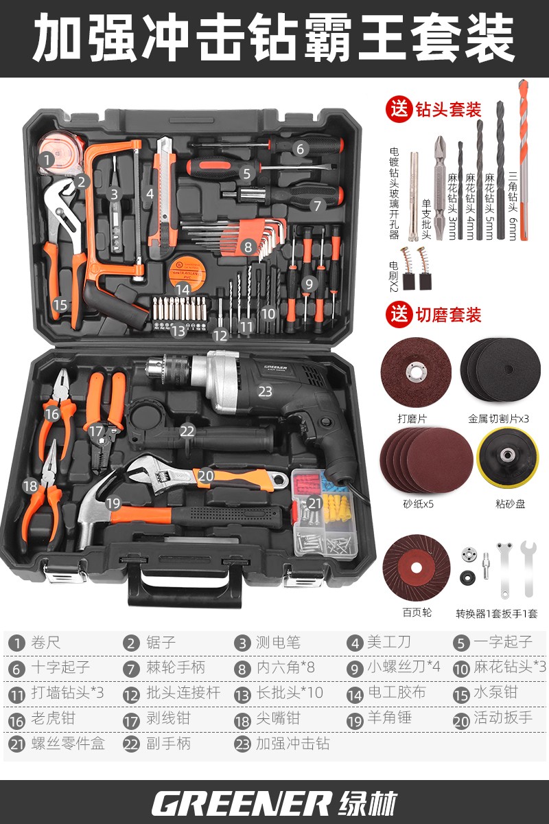 녹색 숲 가정 도구 세트 Daquan 하드웨어 전기 드릴 전기 유지 보수 도구 상자 다기능 전기 조합 특별
