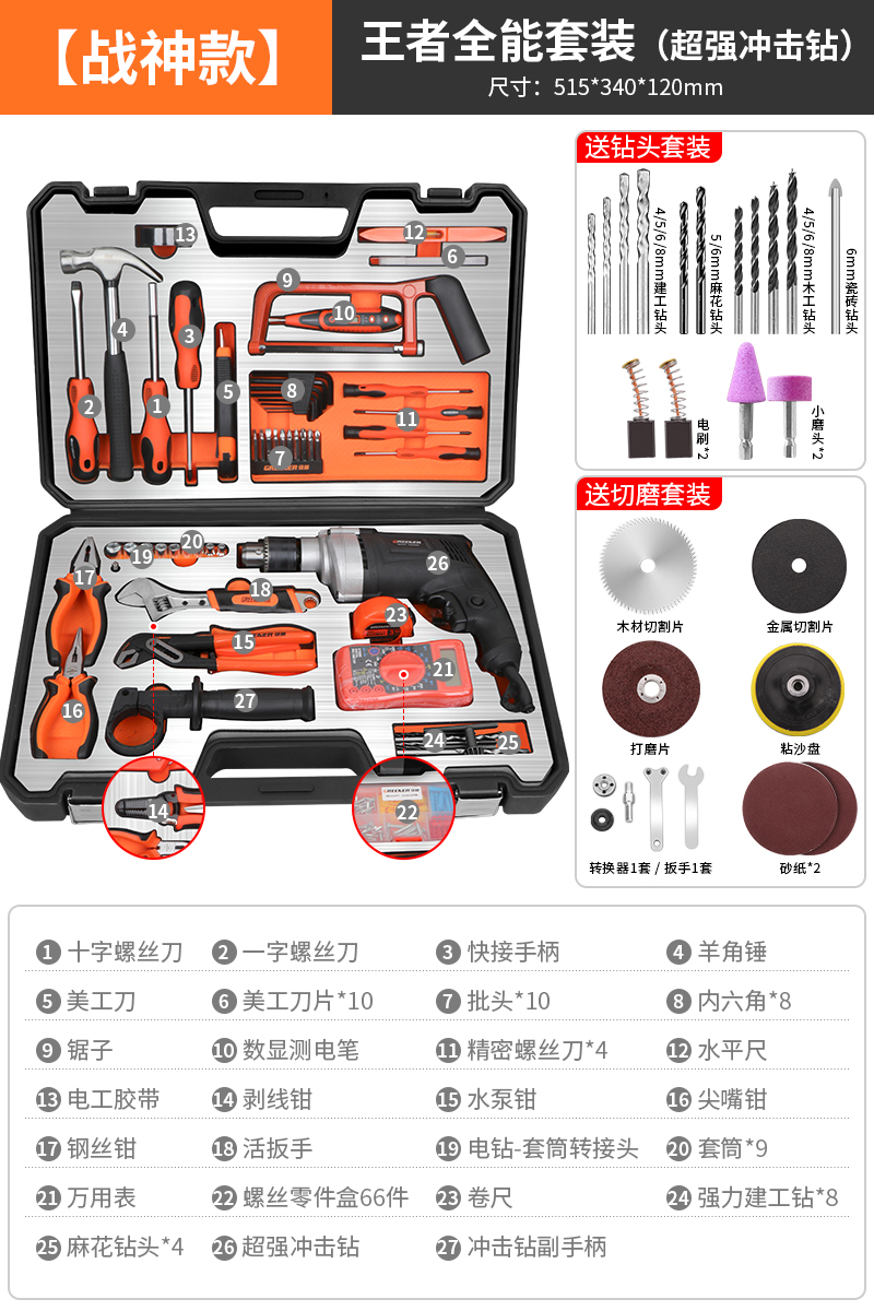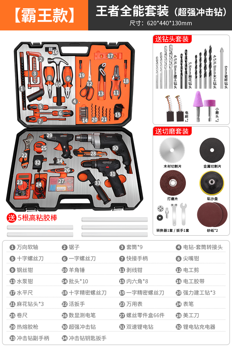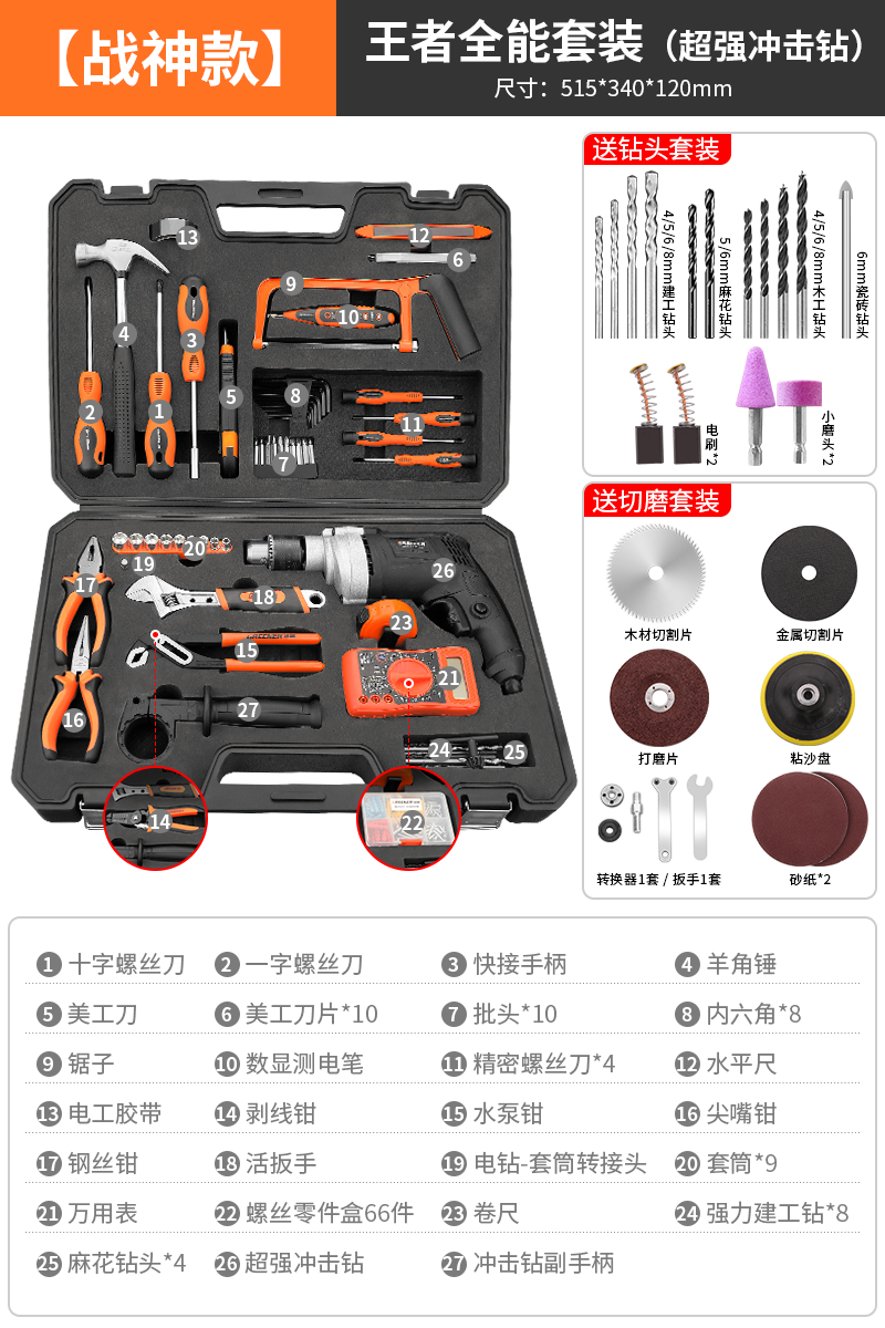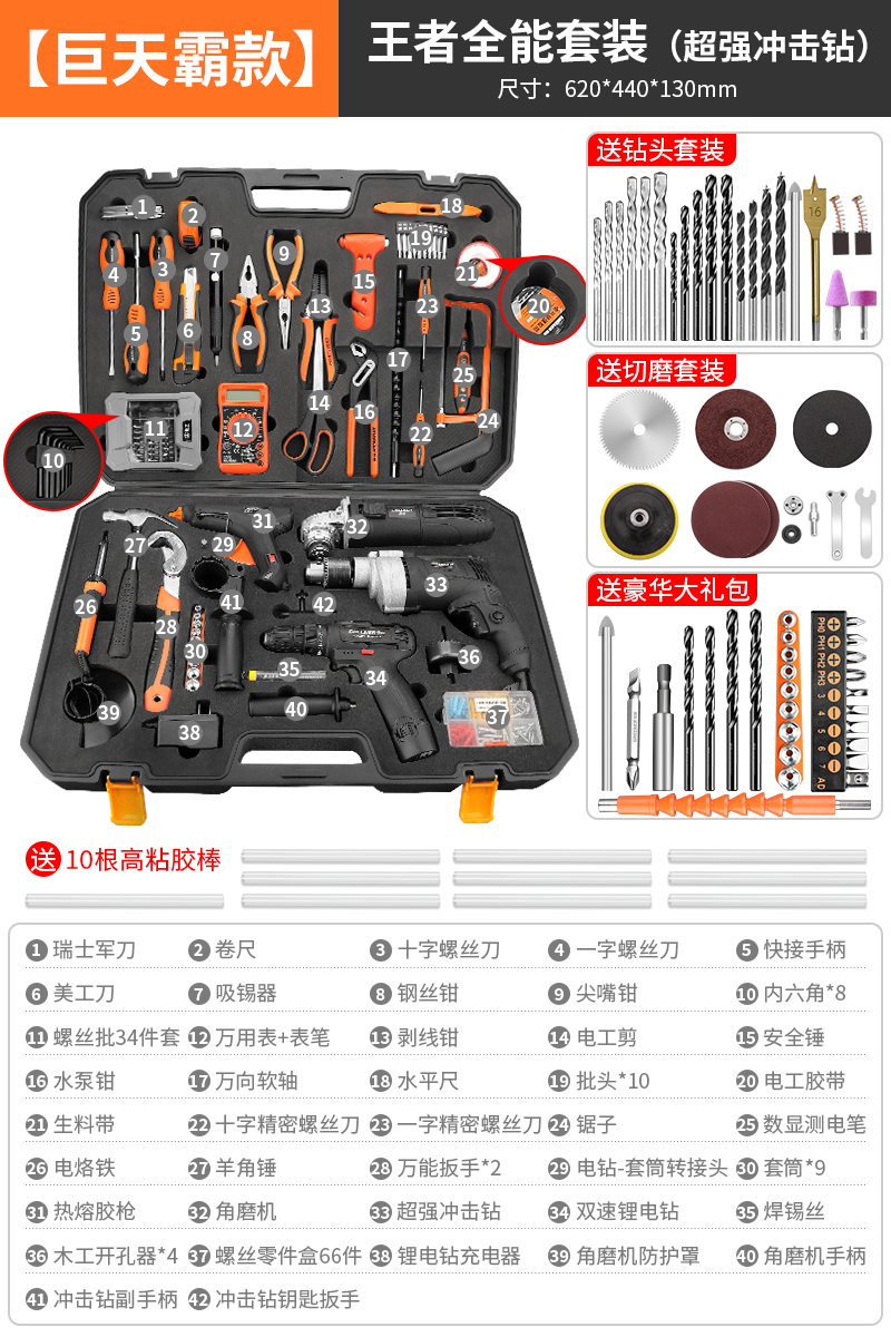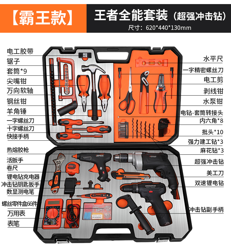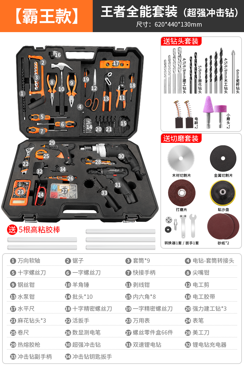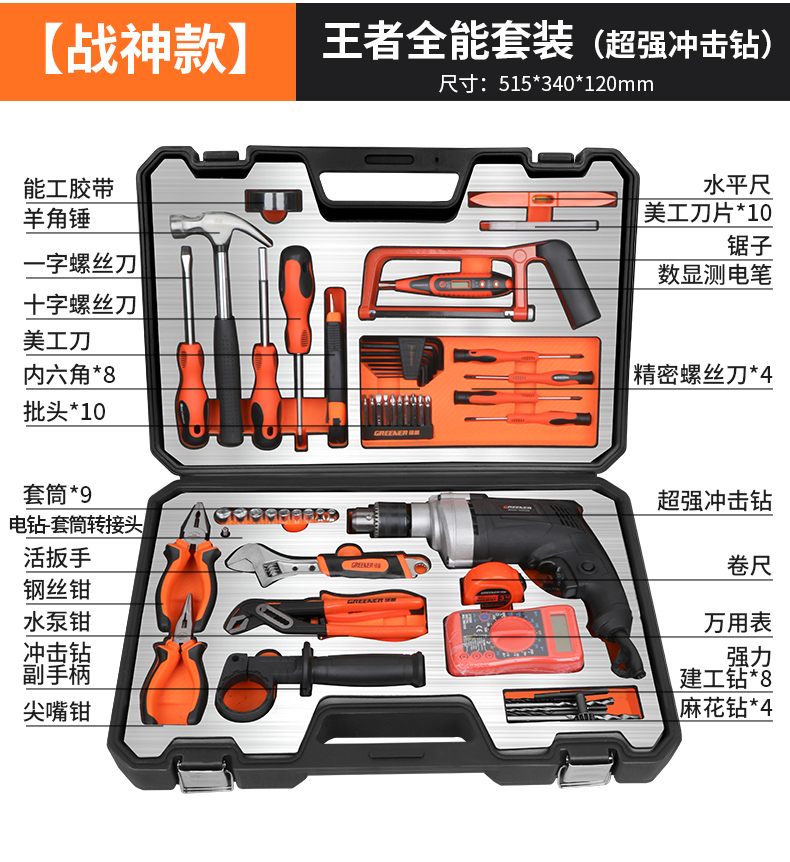 녹색 숲 가정 도구 세트 Daquan 하드웨어 전기 드릴 전기 유지 보수 도구 상자 다기능 전기 조합 특별