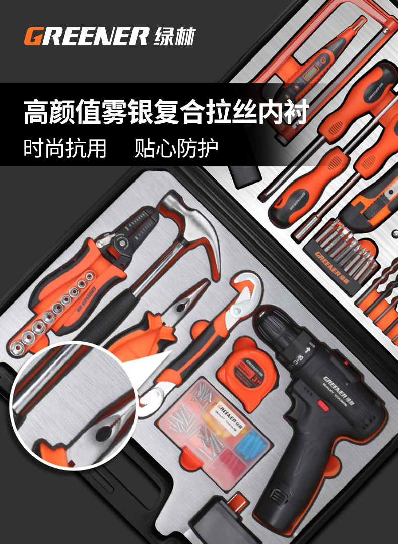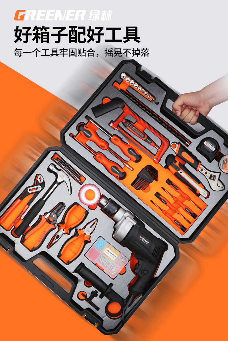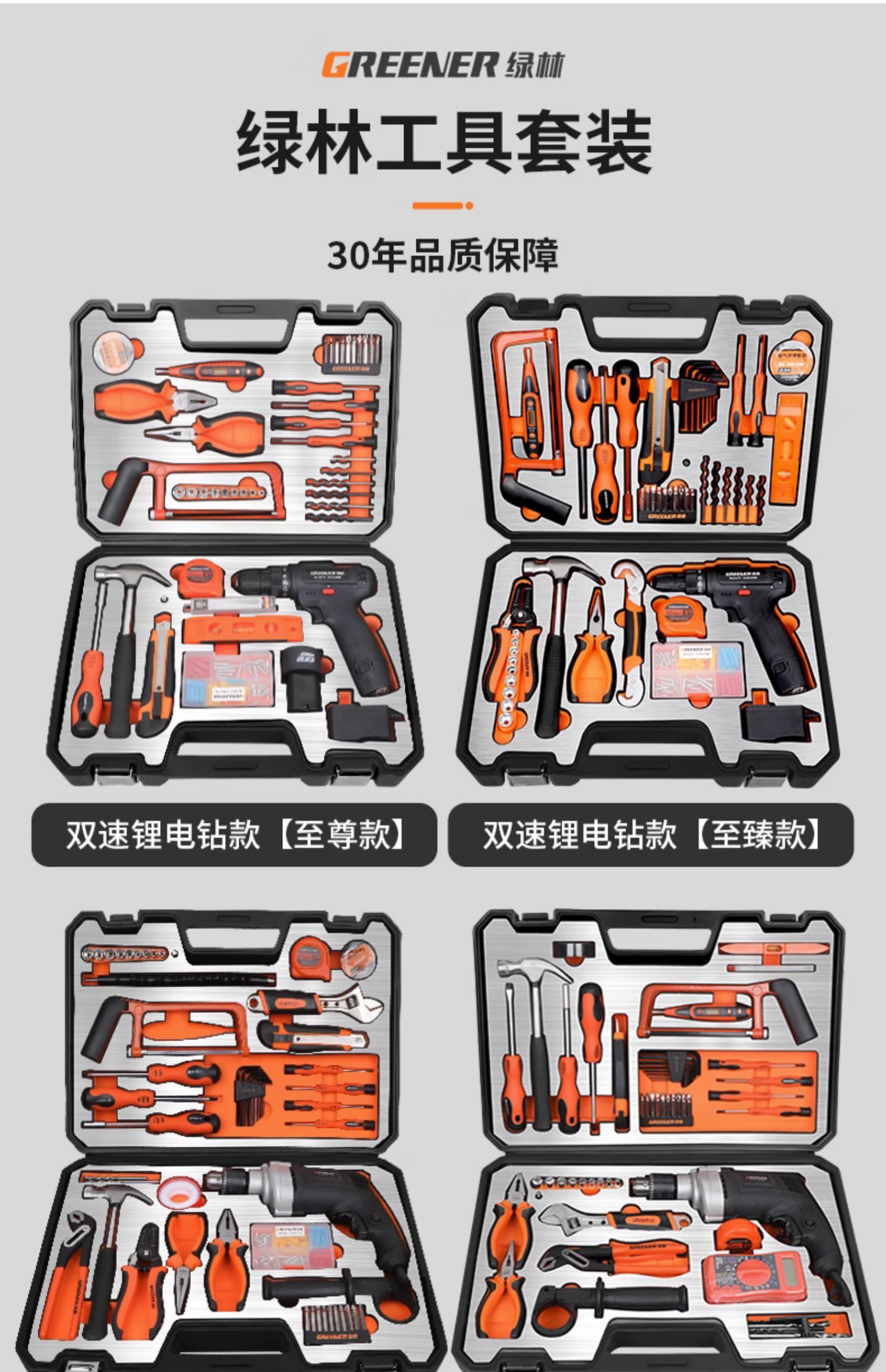 녹색 숲 가정 도구 세트 Daquan 하드웨어 전기 드릴 전기 유지 보수 도구 상자 다기능 전기 조합 특별스토어 가기