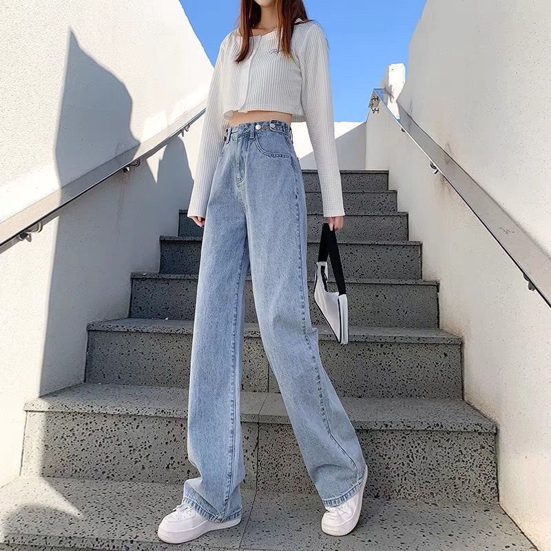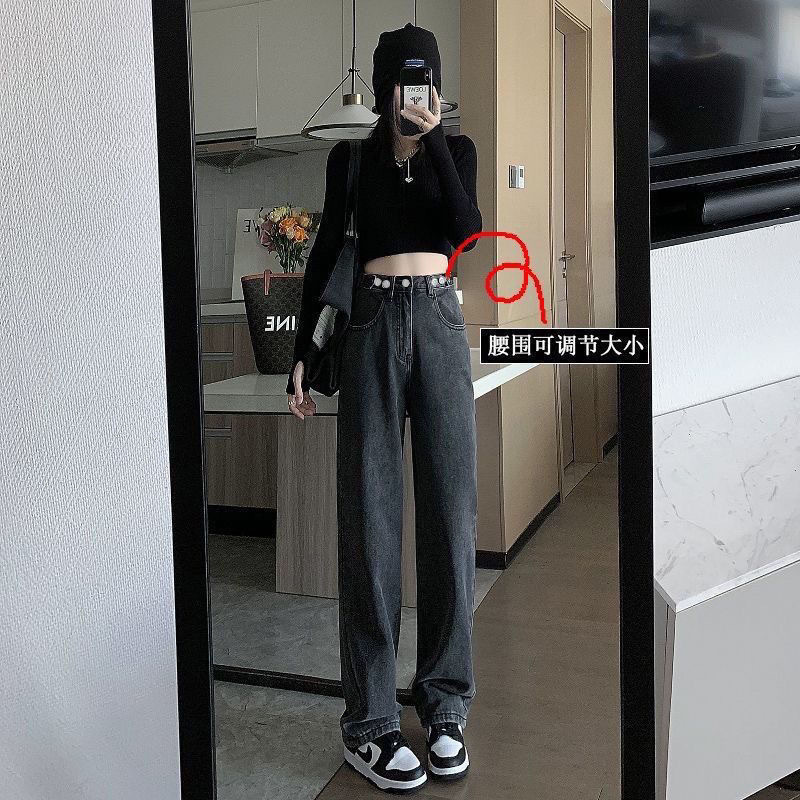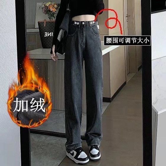 기모 두꺼운 넓은 다리 청바지 여성의 2024 가을 및 겨울 새로운 캐주얼 느슨한 높은 허리 슬리밍 스트레이트 바지스토어 가기