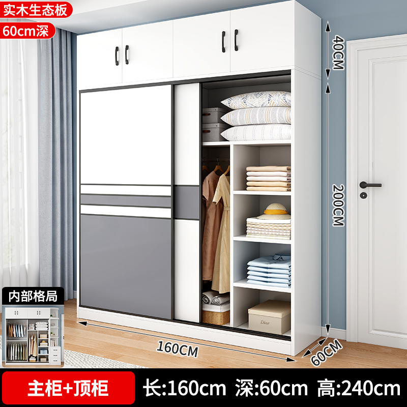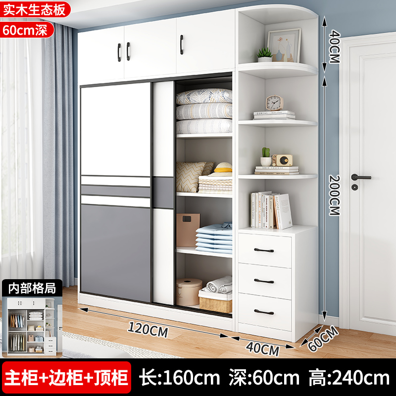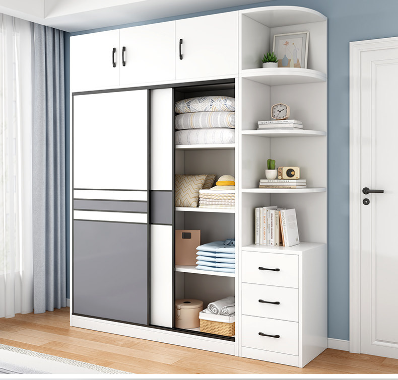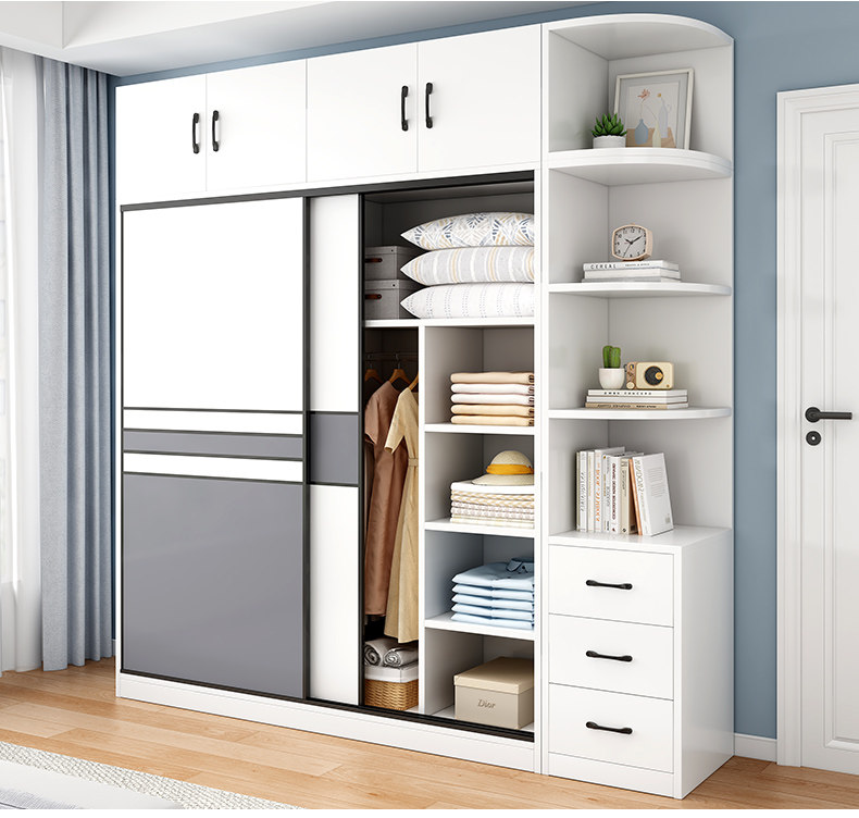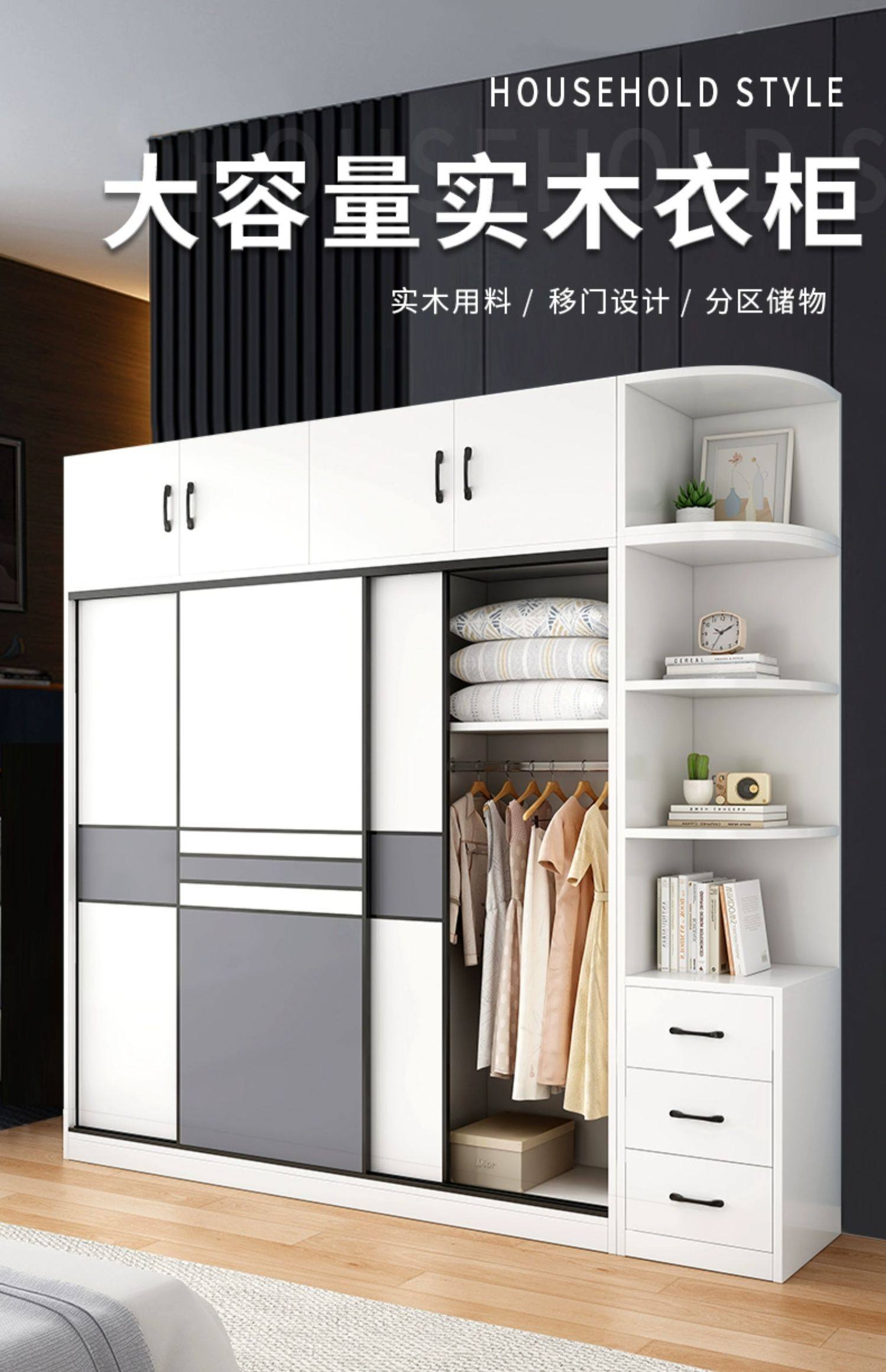 모든 단단한 나무 옷장 홈 침실 어린이 보관 캐비닛 렌탈 룸 2024 슬라이딩 도어가있는 폭발성 스타일 옷장