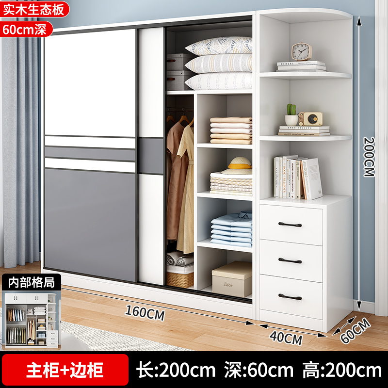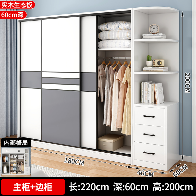 모든 단단한 나무 옷장 홈 침실 어린이 보관 캐비닛 렌탈 룸 2024 슬라이딩 도어가있는 폭발성 스타일 옷장스토어 가기