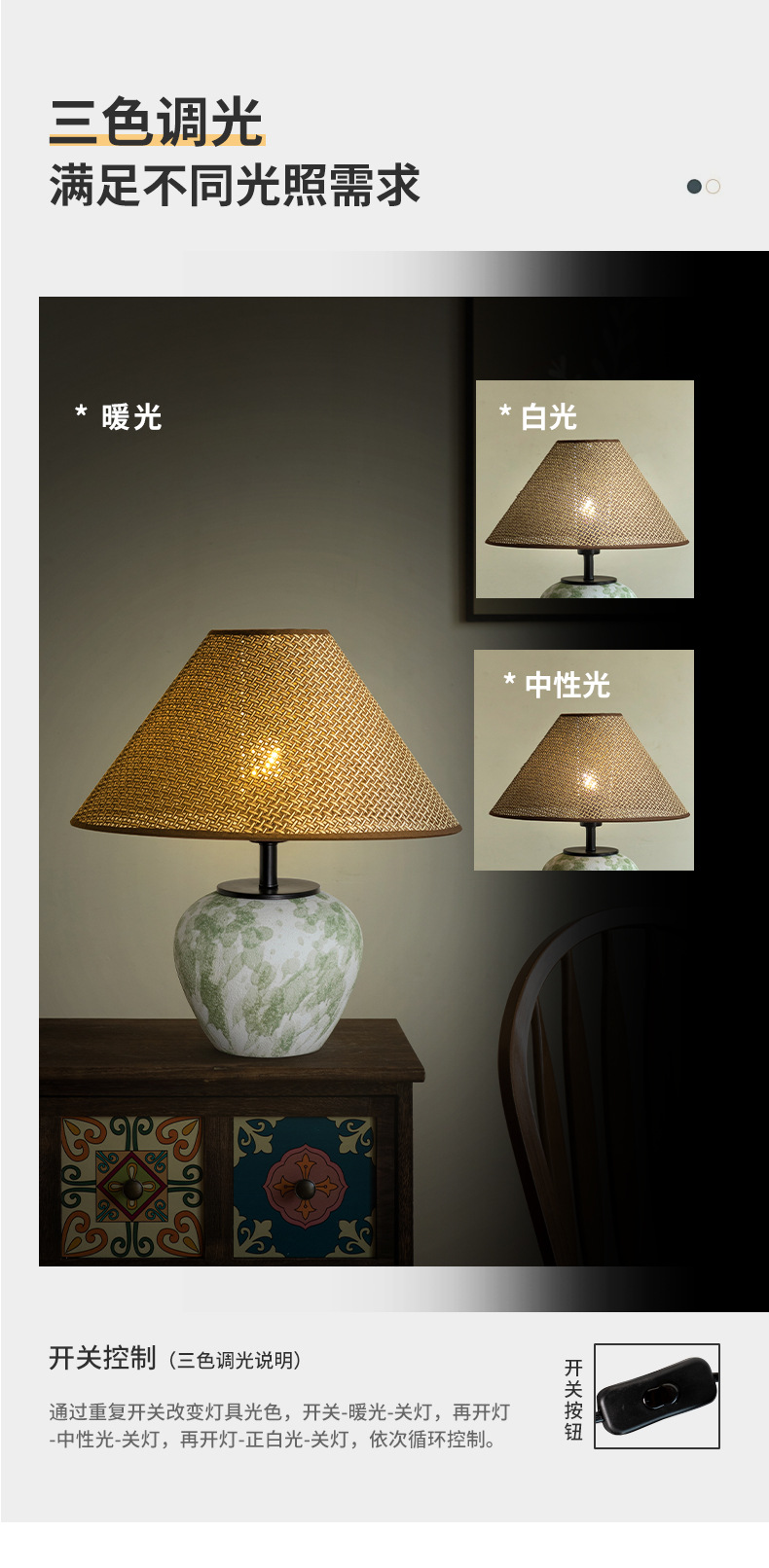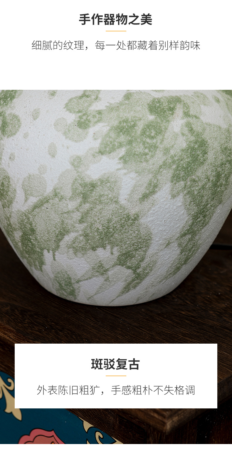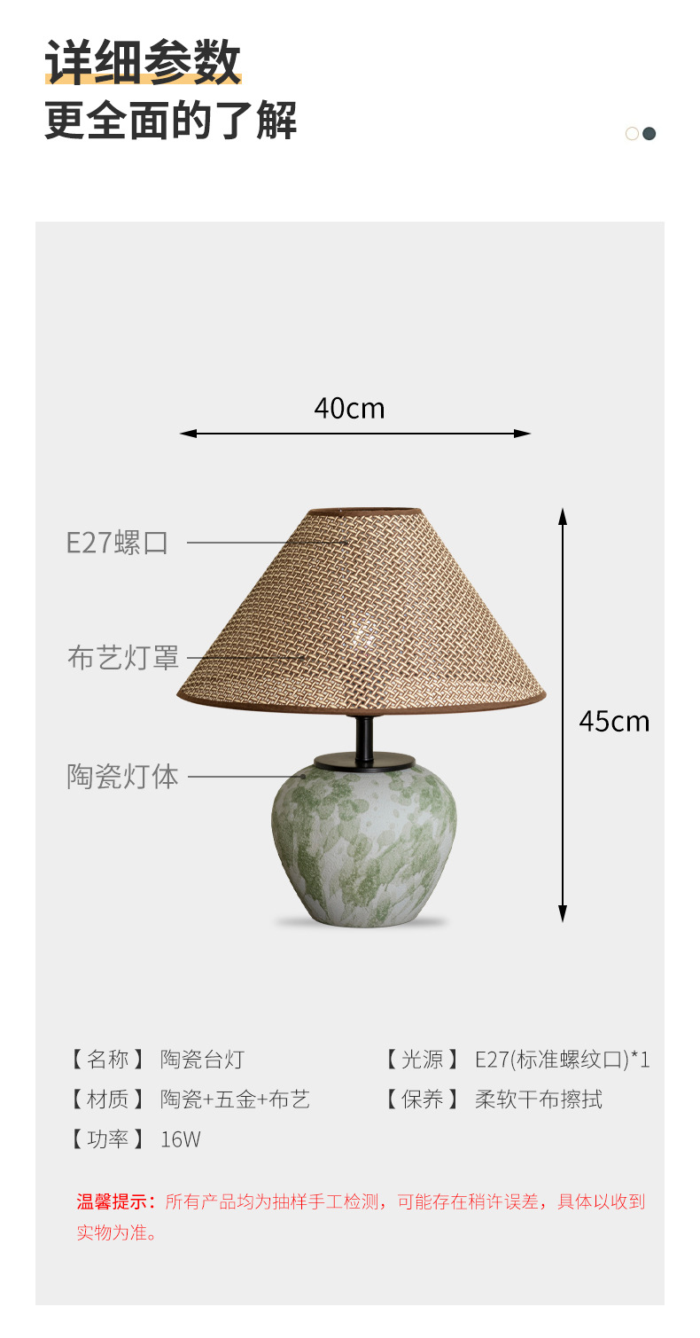 새로운 중국식 세라믹 테이블 램프, 레트로 거실, 침실, 침대 옆, 서재, B&B, 호텔, 객실용, 밤 램프, 밝기 조절 가능스토어 가기