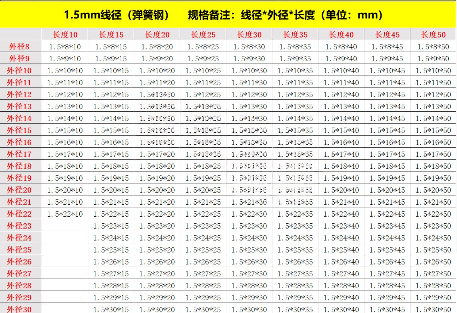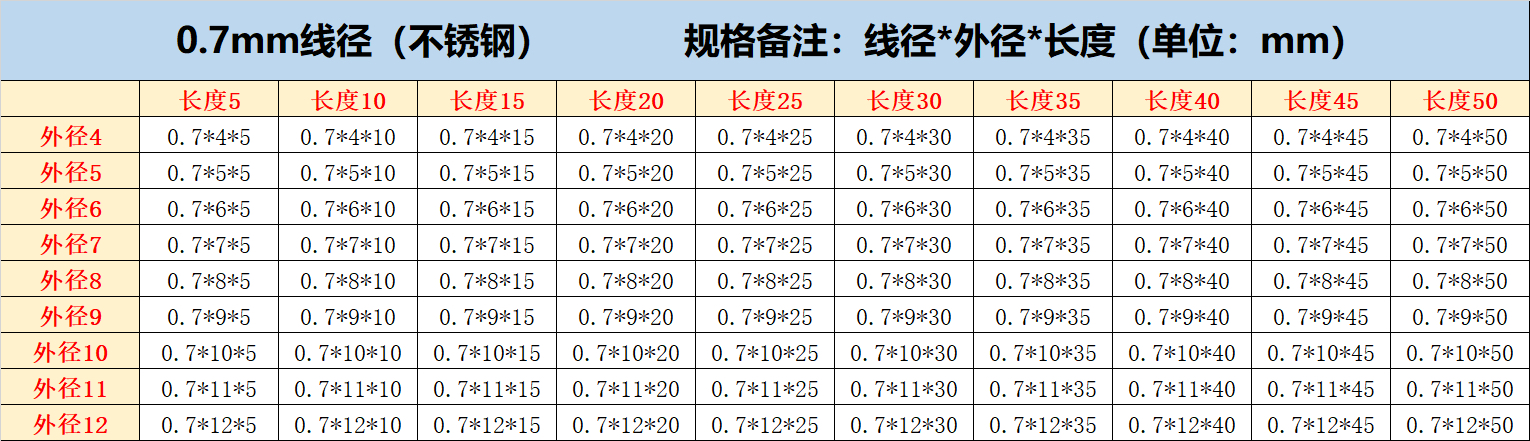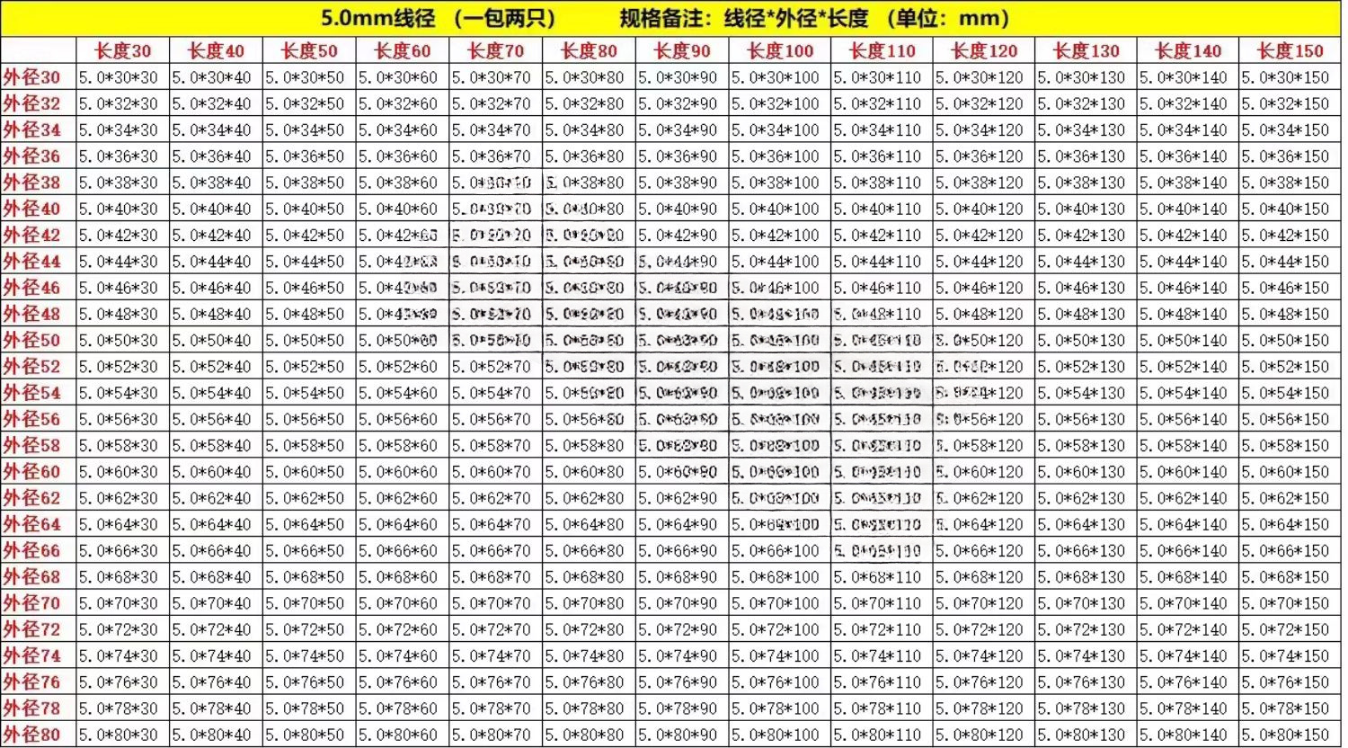 • 크기: 와이어 직경*외경*높이(mm)