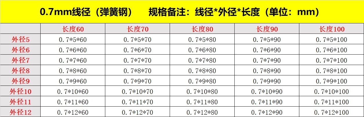 • 스프링 강 0.7mm 길이 50-100 길이(팩당 5개)