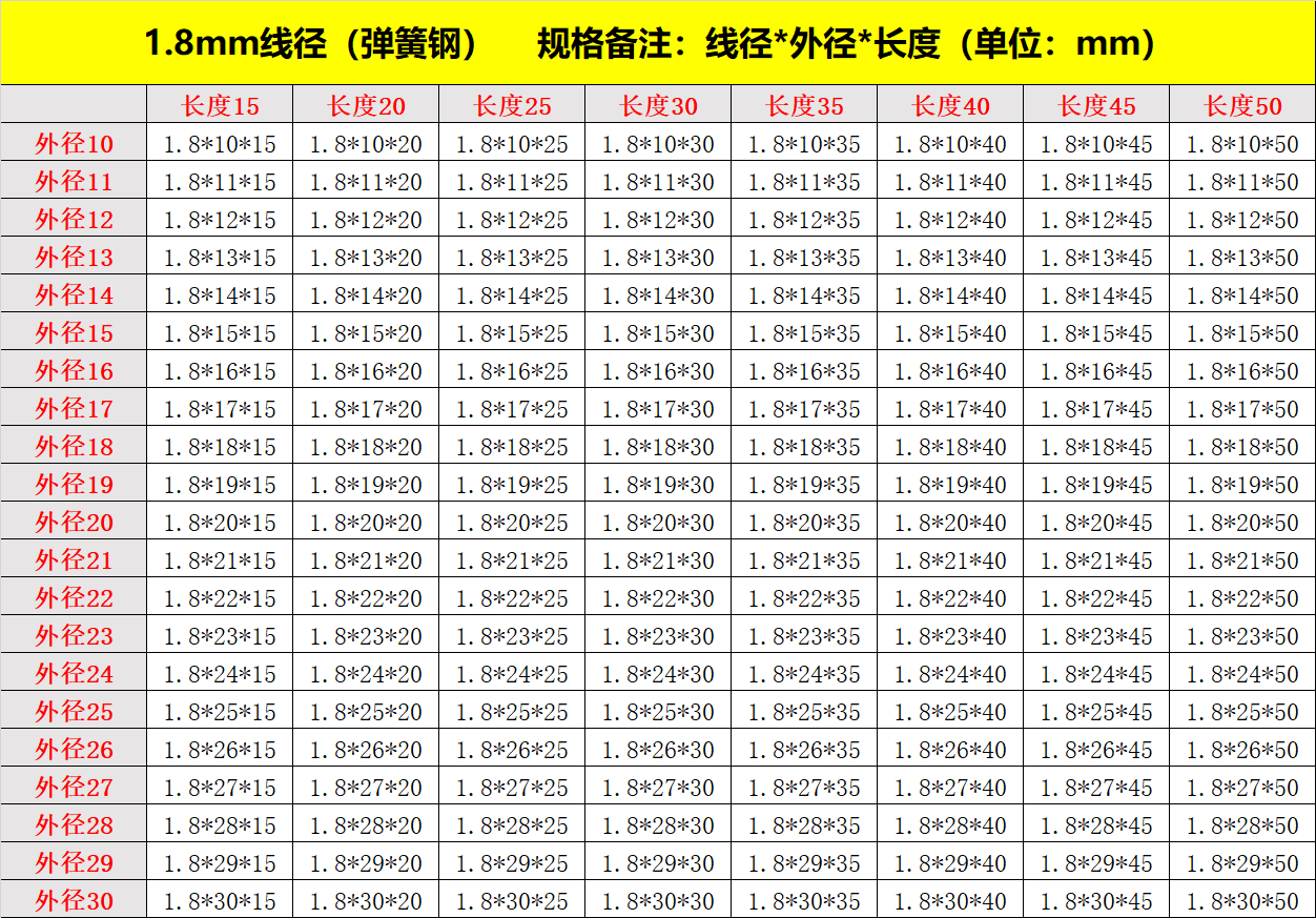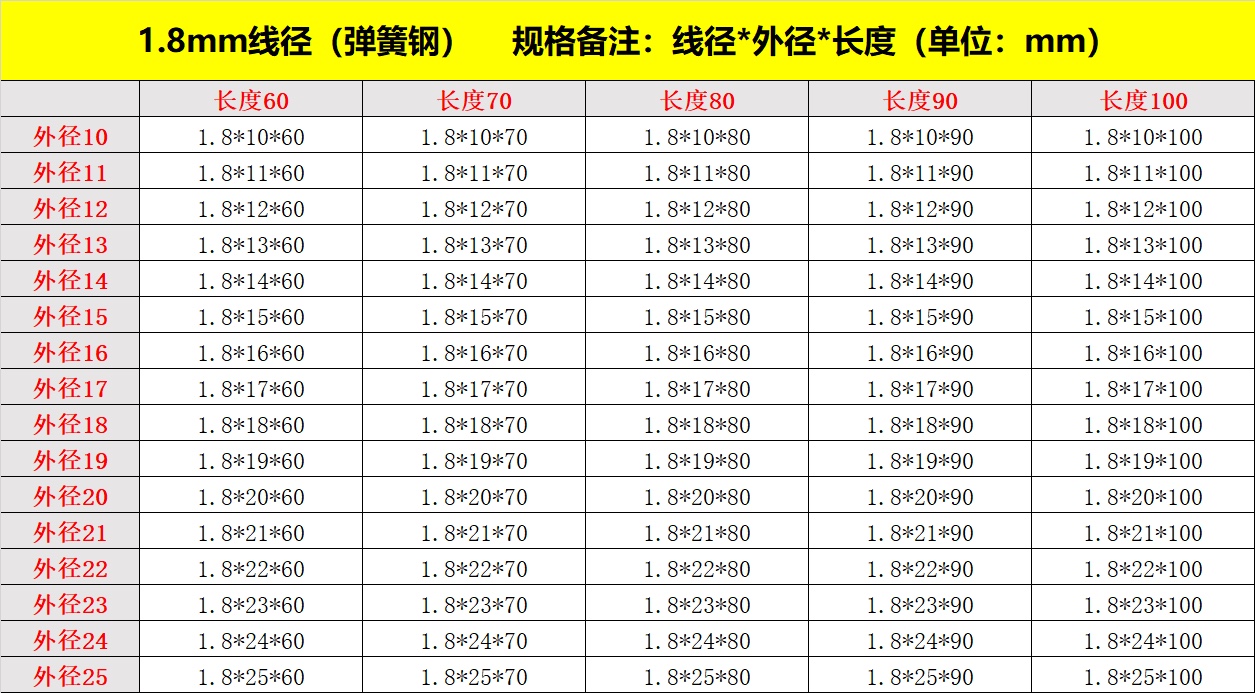 • 스프링 강 1.8mm 길이 50-100 길이(팩당 5개)