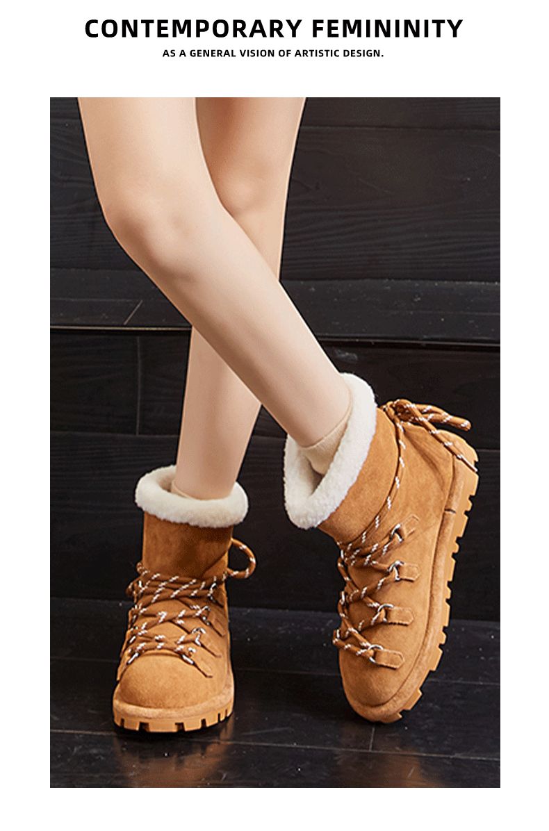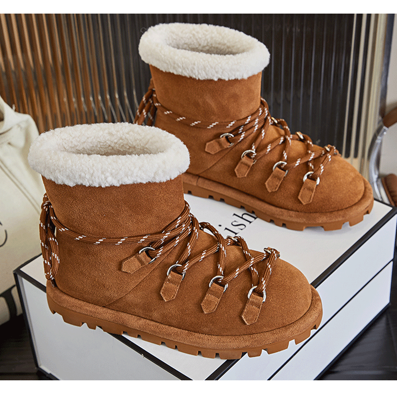 여성을위한 정품 가죽 스노우 부츠 2025 겨울 새로운 스타일 플러스 벨벳 따뜻한 스트랩 짧은 부츠 여성을위한 캐주얼 다목적 두꺼운 밑창 마틴 부츠
