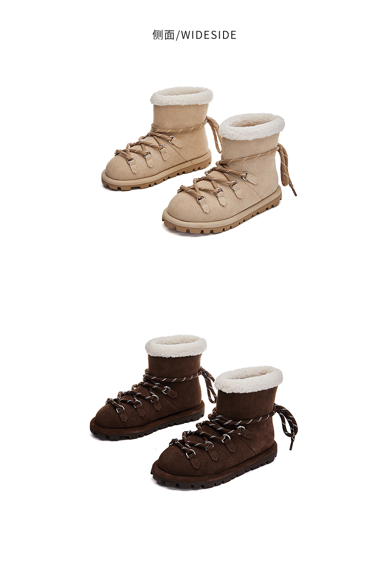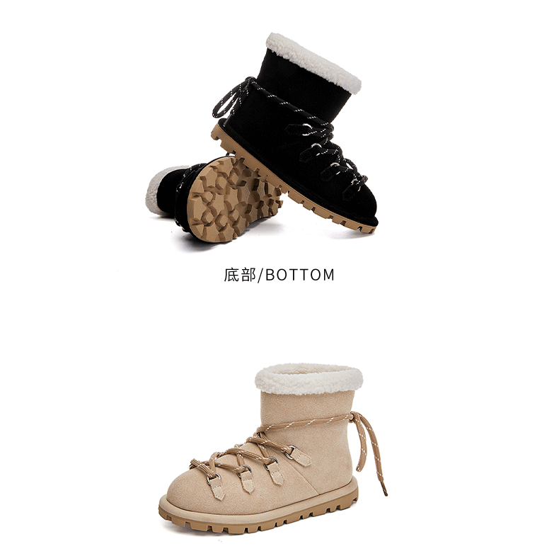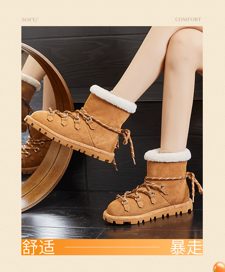 여성을위한 정품 가죽 스노우 부츠 2025 겨울 새로운 스타일 플러스 벨벳 따뜻한 스트랩 짧은 부츠 여성을위한 캐주얼 다목적 두꺼운 밑창 마틴 부츠스토어 가기