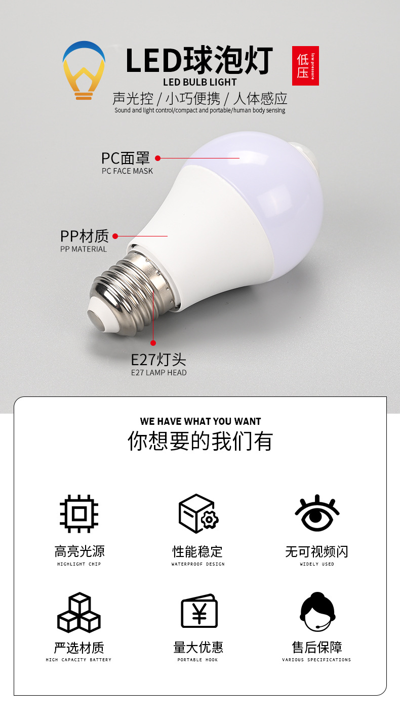 Led 저전압 전구 e27 스마트 전구 12V36V 사운드 및 조명 제어 스마트 전구 레이더 인체 유도 전구