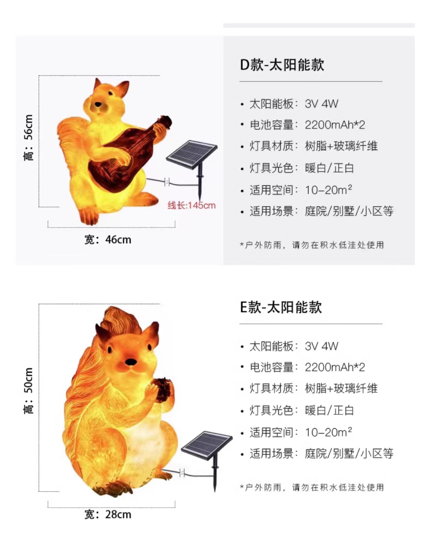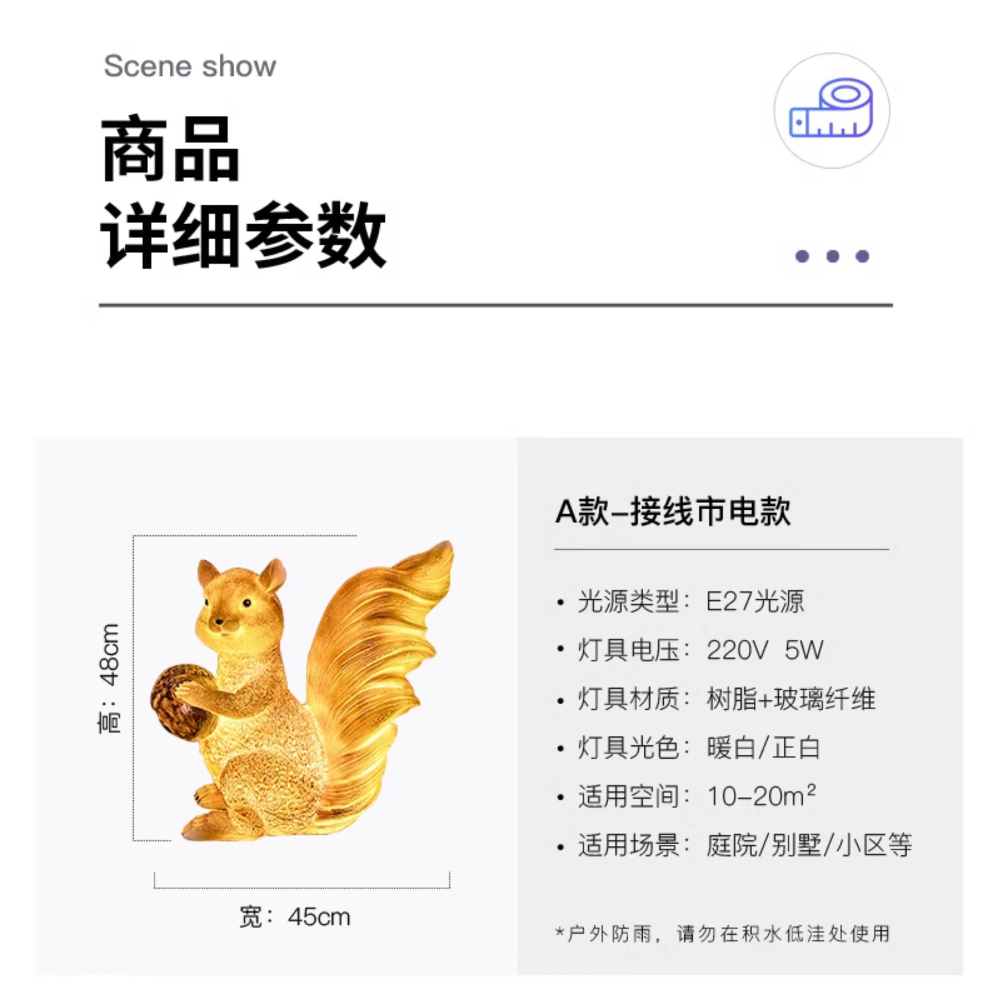 야외 다람쥐 빛 정원 빛 잔디 빛 방수 정원 공원 레이아웃 장식 빛 대기 빛 모방 동물 빛