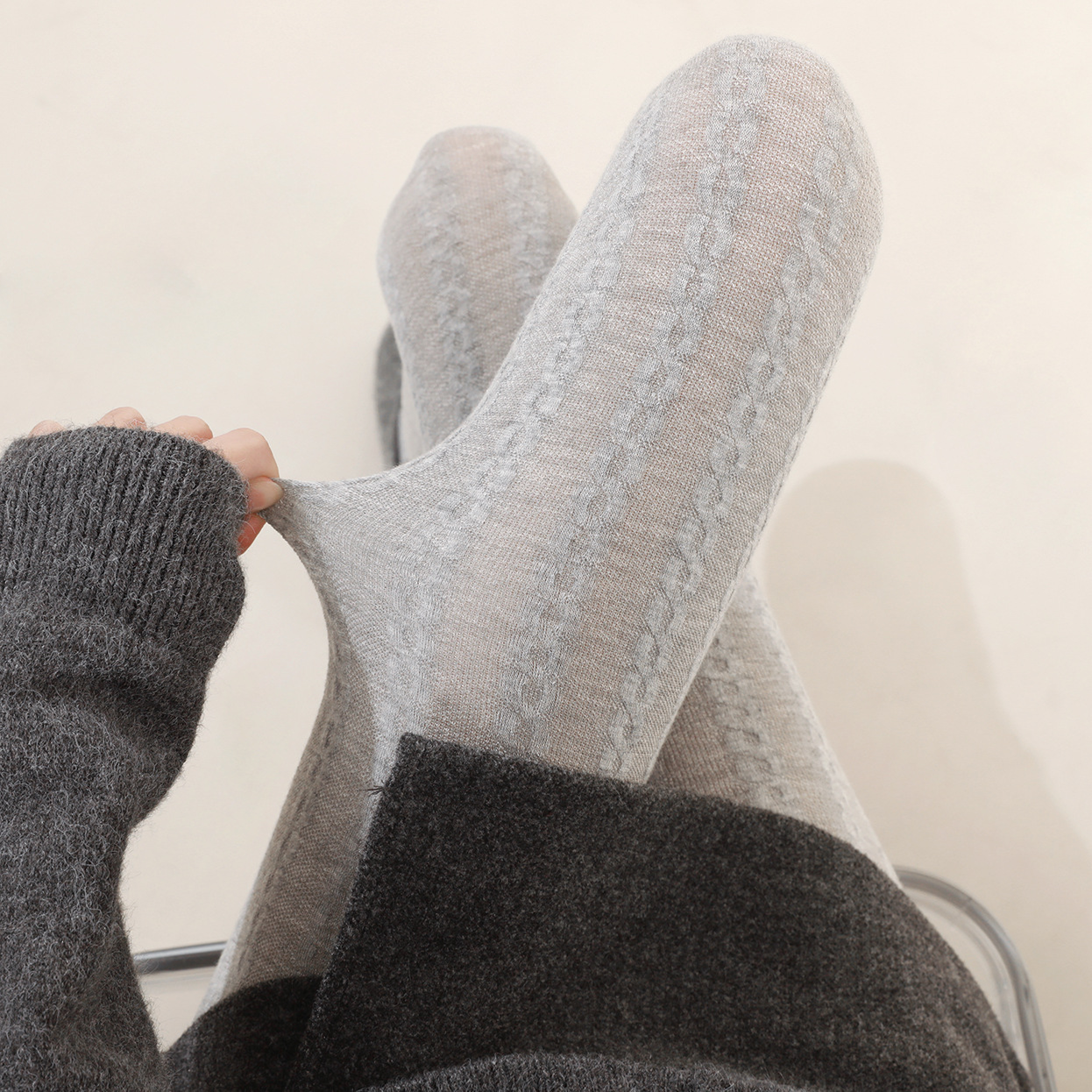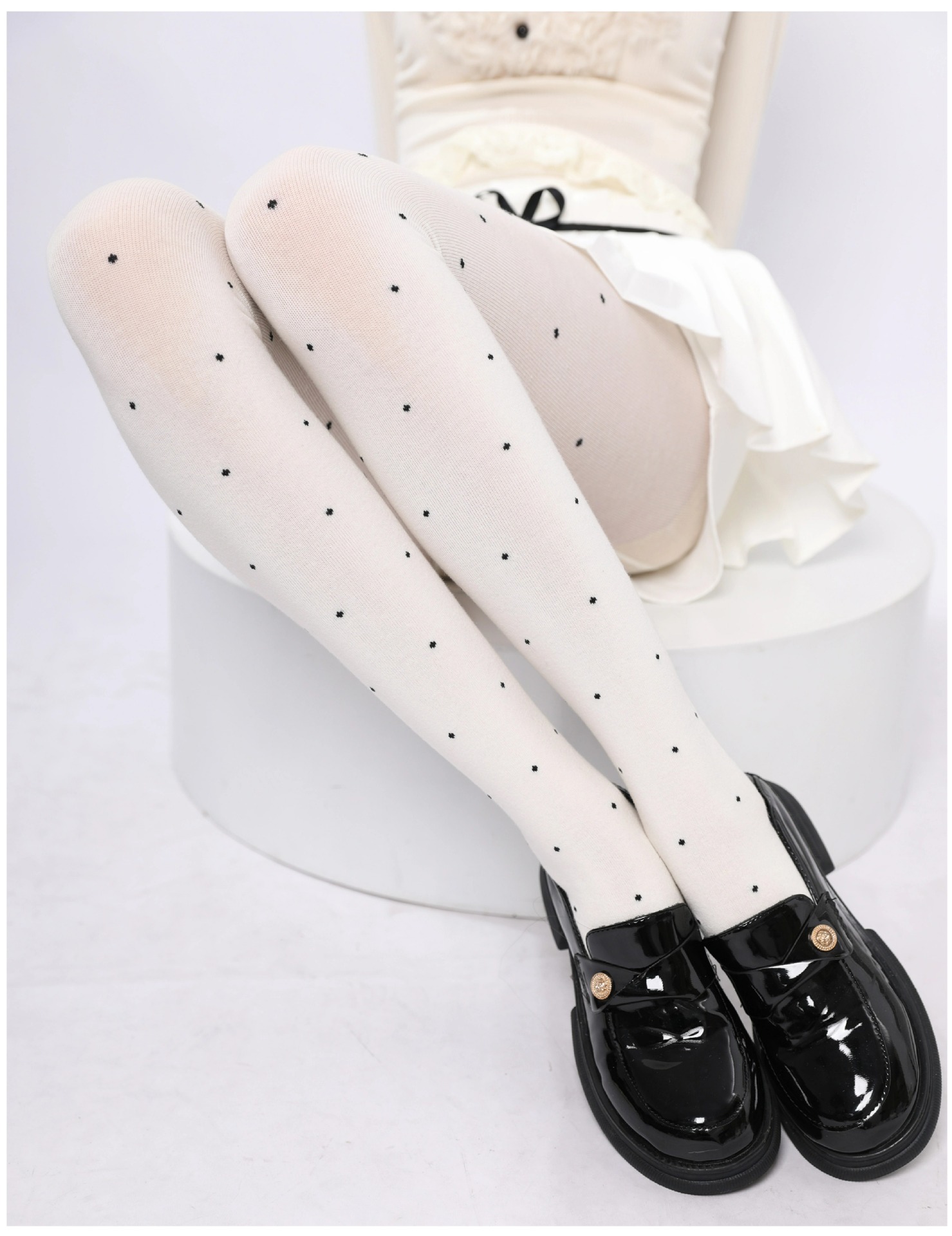 빈티지 그레이 폴카 도트 레깅스 여성의 가을과 겨울 JK 퓨어 폴카 도트 슬림 팬티 스타킹 따뜻한 아우터 레깅스스토어 가기
