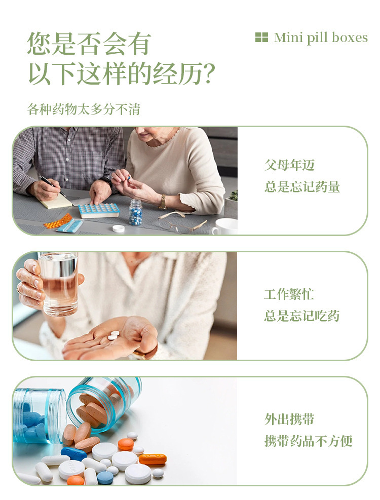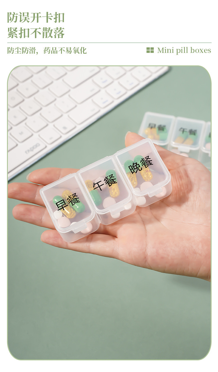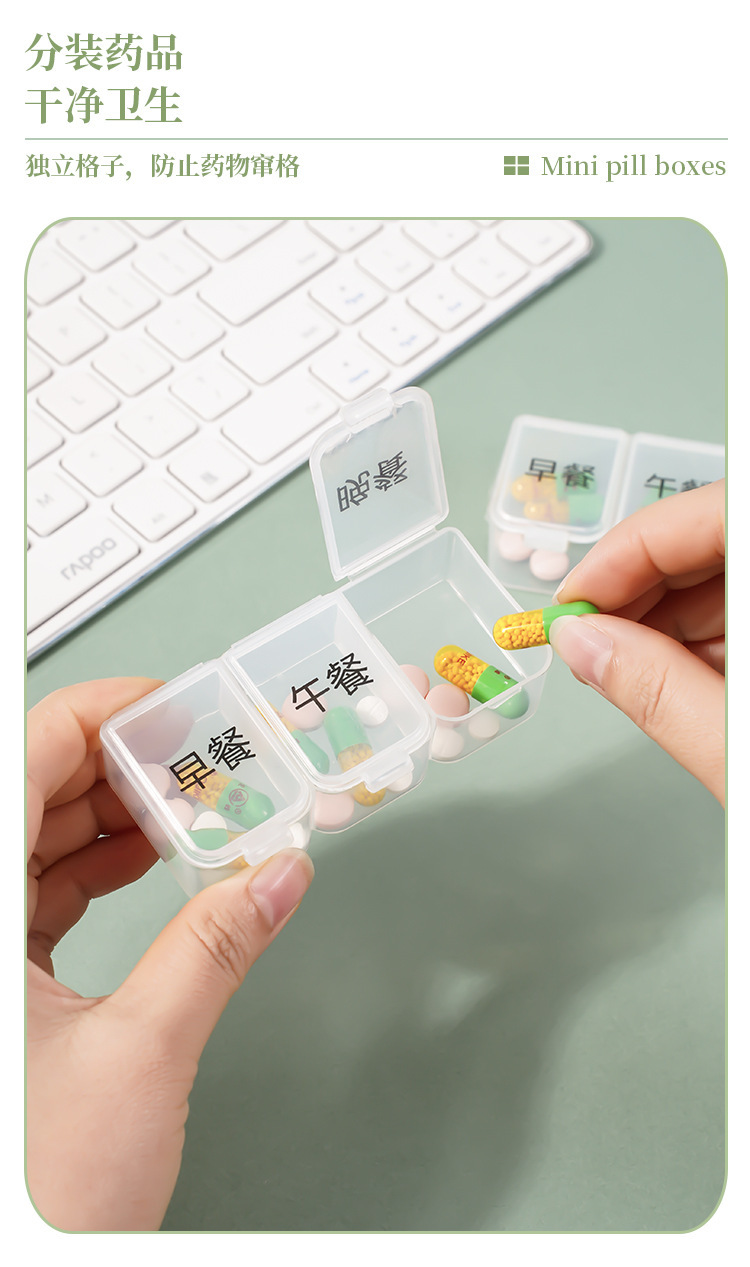 미니 작은 약 상자 식사 전 및 식사 후 하루 3 회 식사 노인을위한 휴대용 약스토어 가기