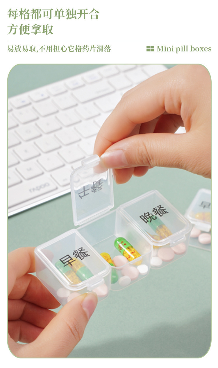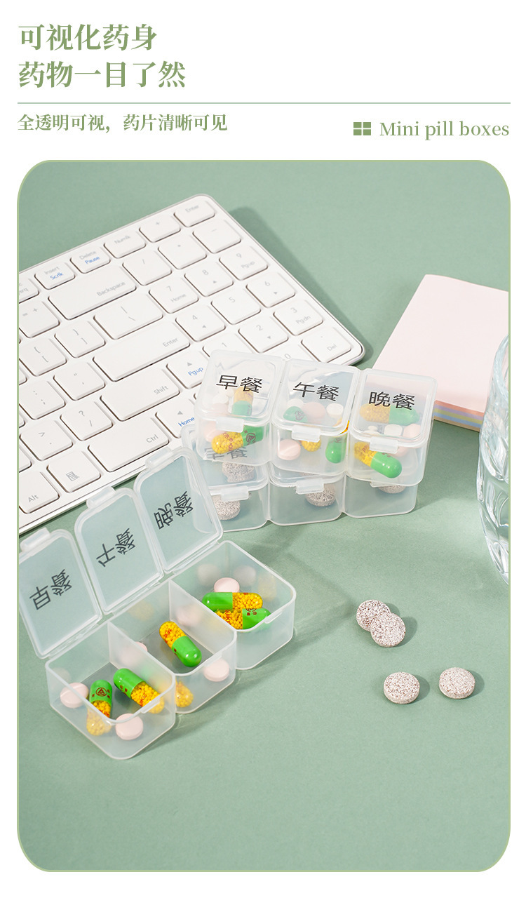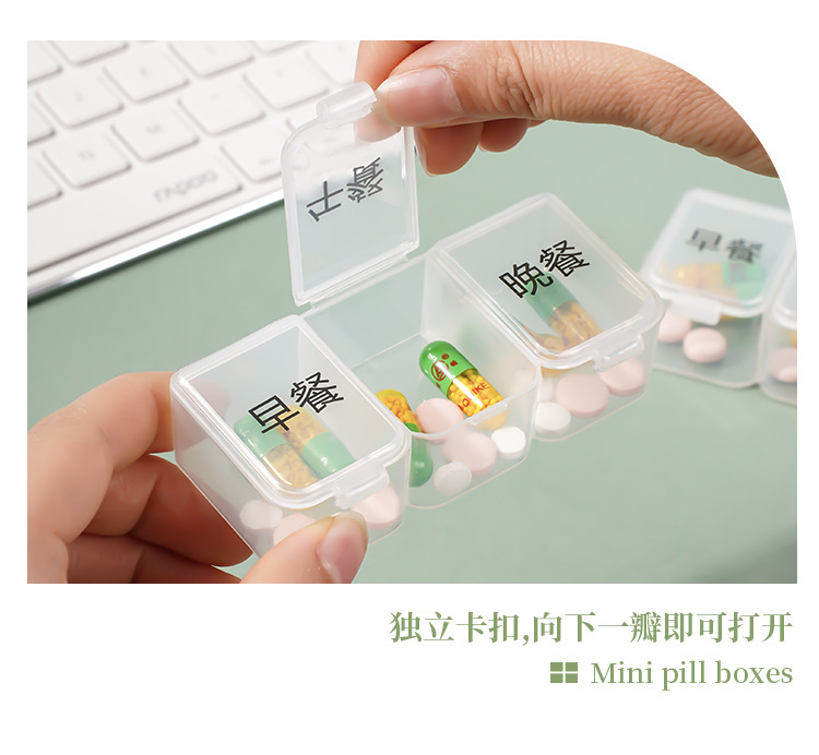 미니 작은 약 상자 식사 전 및 식사 후 하루 3 회 식사 노인을위한 휴대용 약