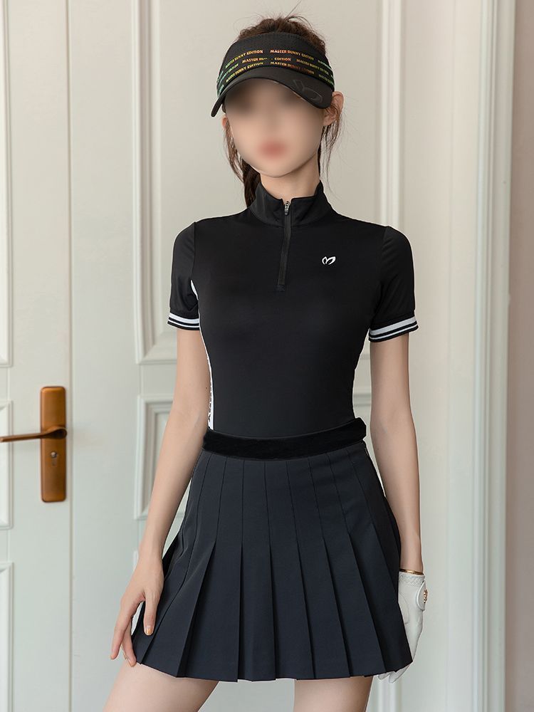 한국 새로운 골프 의류 여성 여름 지퍼 수직 칼라 슬림 핏 반팔 티셔츠 빠른 건조 유행 올 매치 의류스토어 가기
