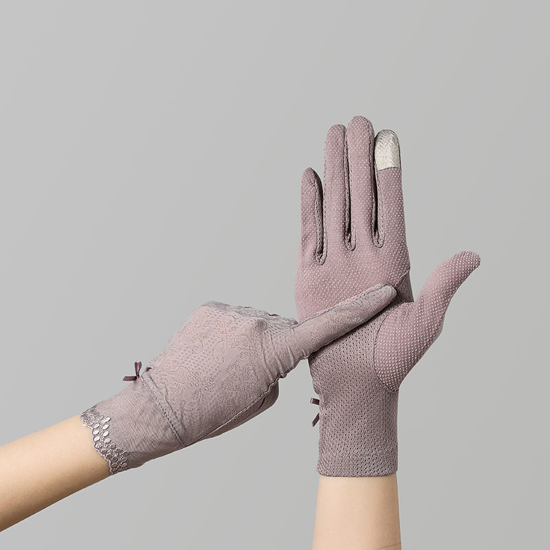 운전 태양 보호 장갑 여성의 얇은 여름 사이클링 미끄럼 방지 자외선 터치 스크린 아이스 실크 짧은 통기성 5 손가락 장갑